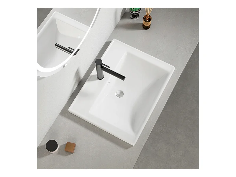 Umywalka ceramiczna nablatowa NETTLIFE - biała, kwadratowa umywalka nablatowa