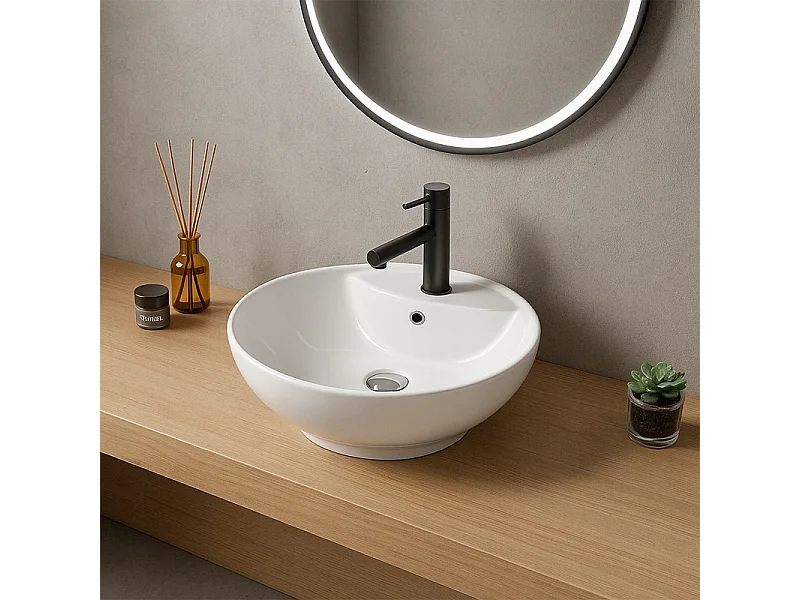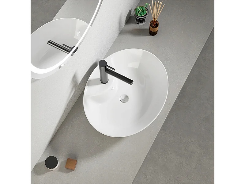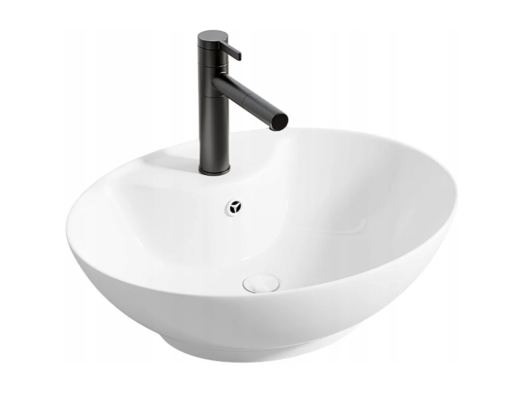 Umywalka nablatowa, owalna, ceramiczna, biała, połysk