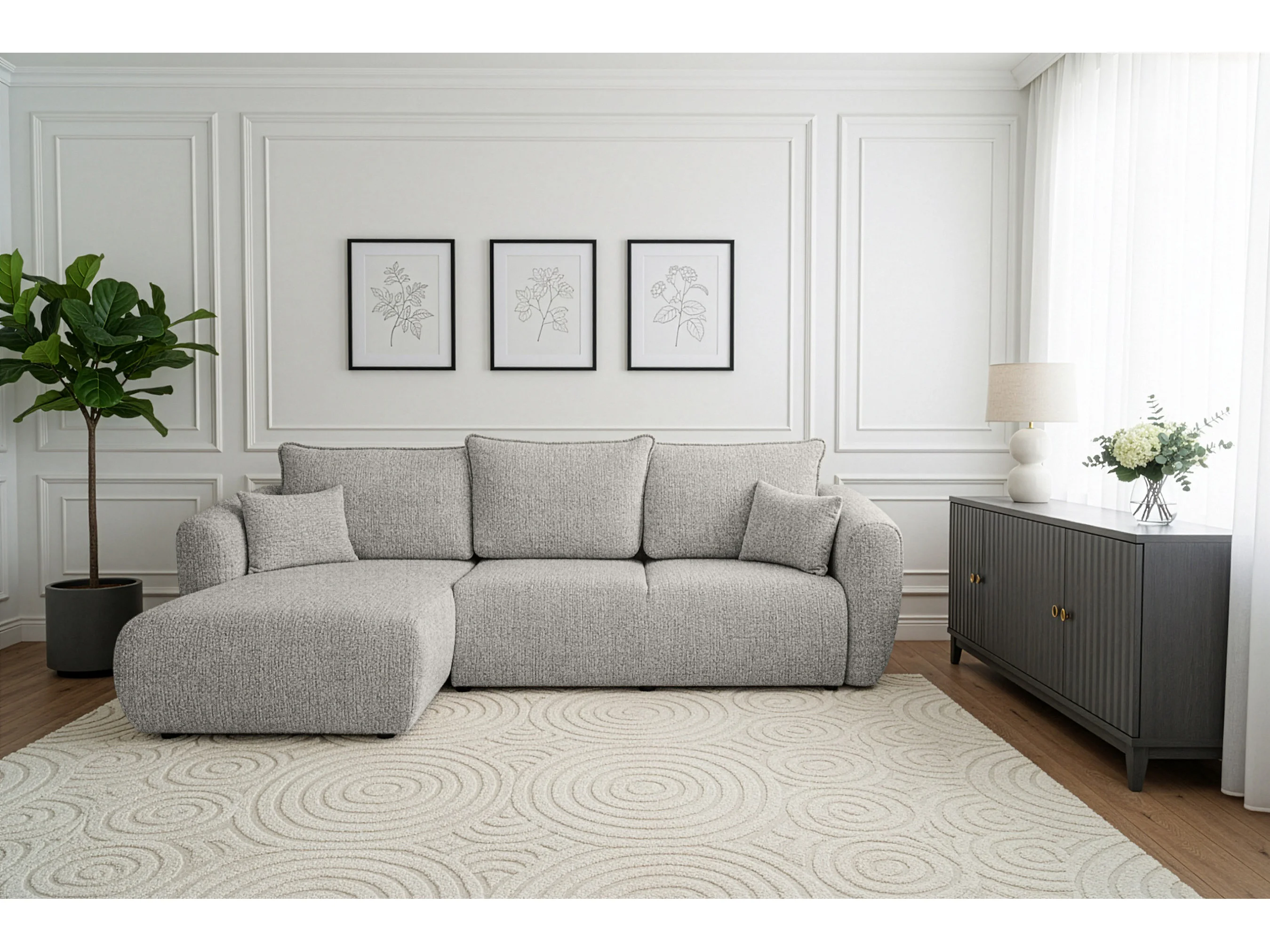 Uniwersalny narożnik Flora z funkcją spania, do salonu, Bella, szary
