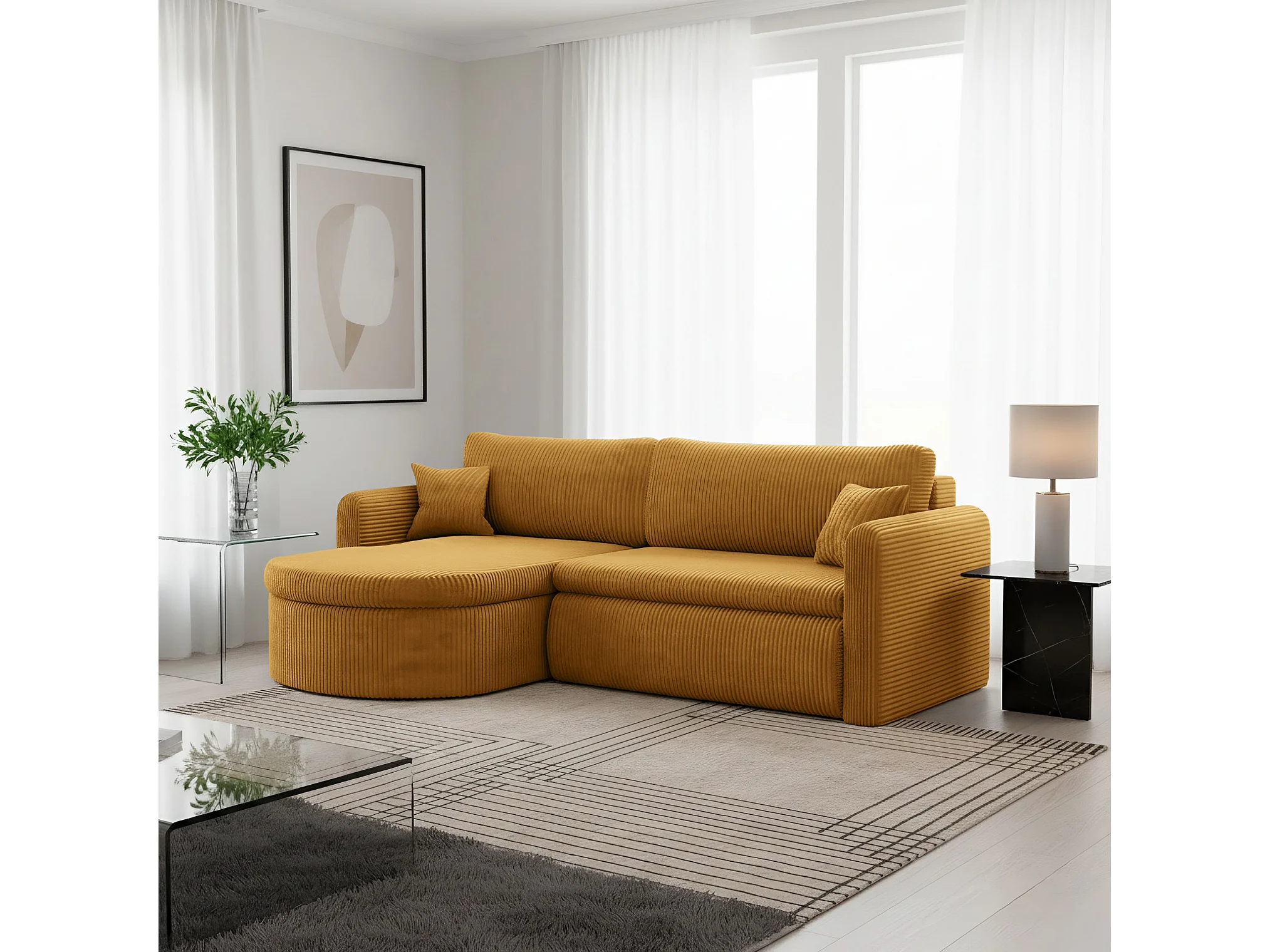 Uniwersalny narożnik Verona L z funkcją spania, do salonu, musztardowy