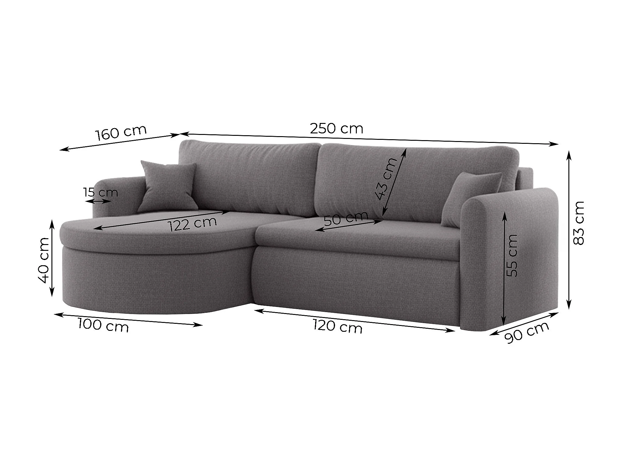 Uniwersalny narożnik Verona L z funkcją spania, do salonu, szary