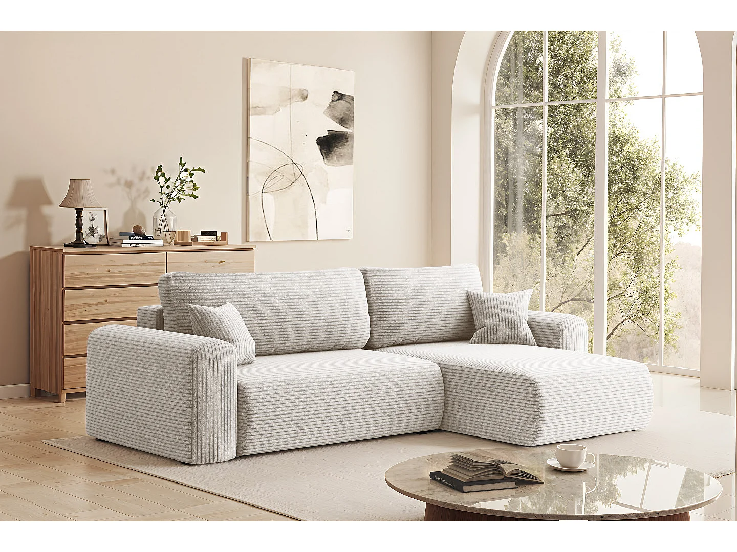 Uniwersalny narożnik z funkcją spania, do salonu, CAPRI L, beżowy