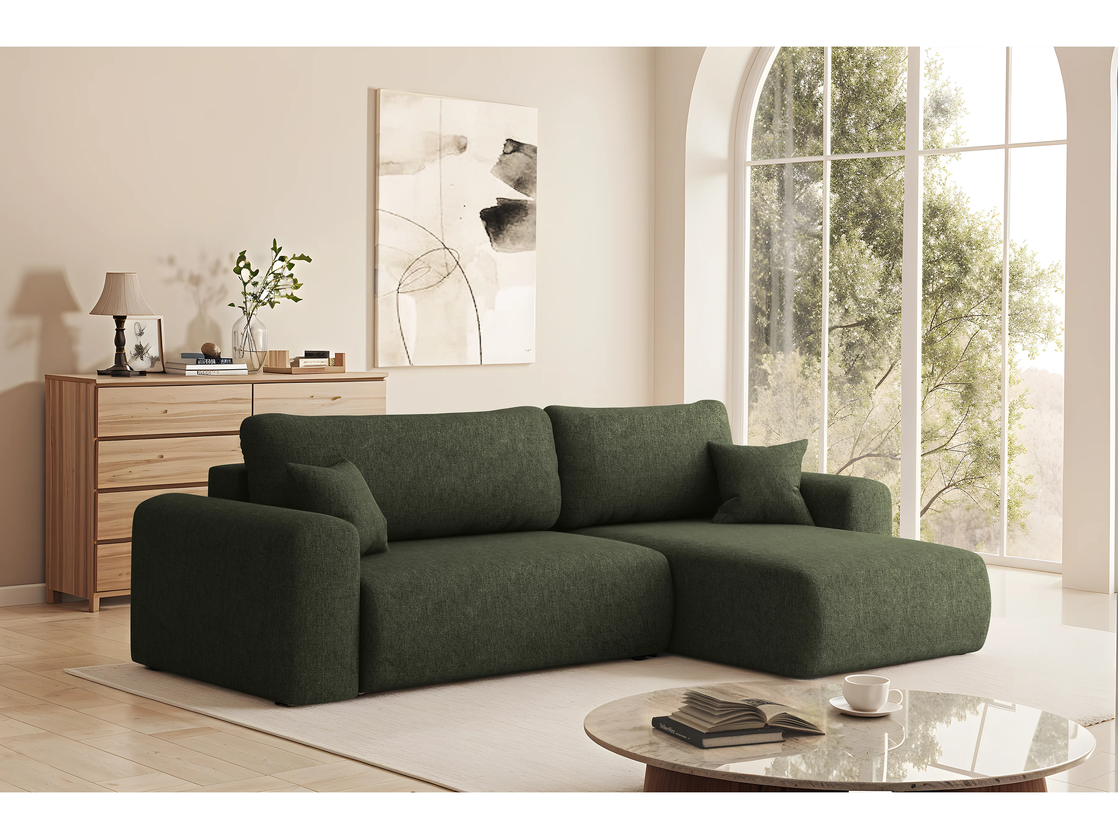 Uniwersalny narożnik z funkcją spania, do salonu, Capri L VERITA - ciemnozielony