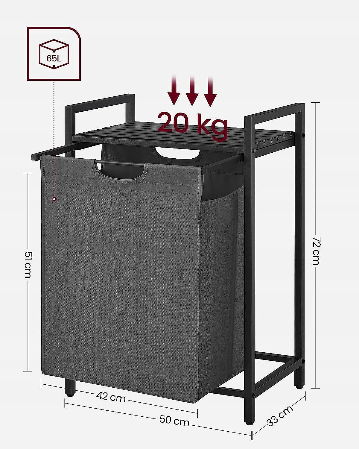 Valora Szary Jednokomorowy Kosz na Pranie 65L Styl Loft
