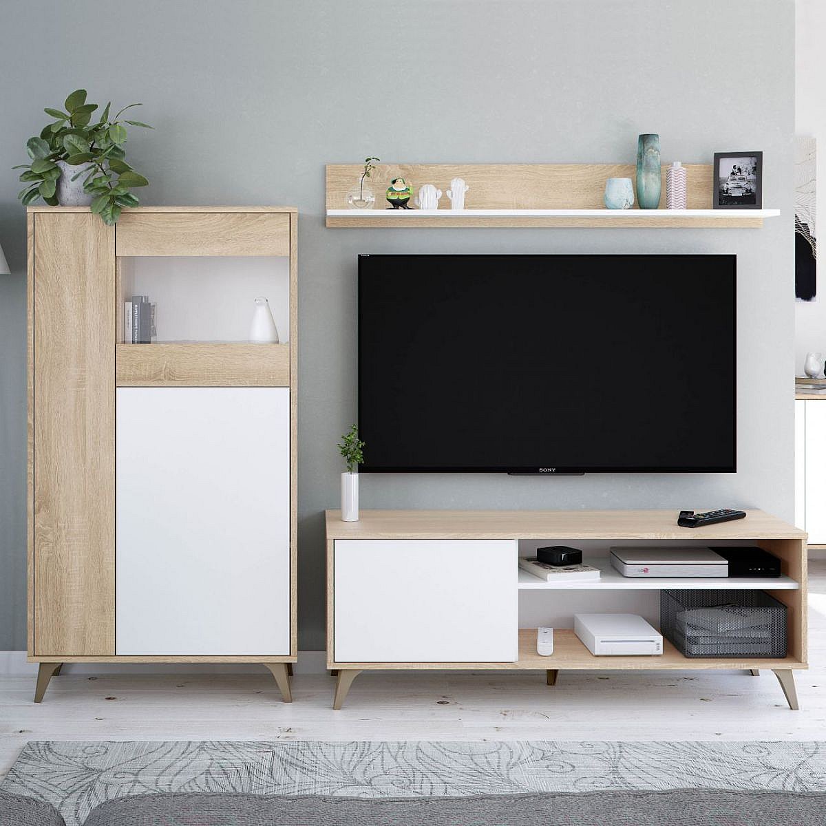 Vitrina Kikua Plus Blanco Artik (Blanco Mate) - Roble Canadian