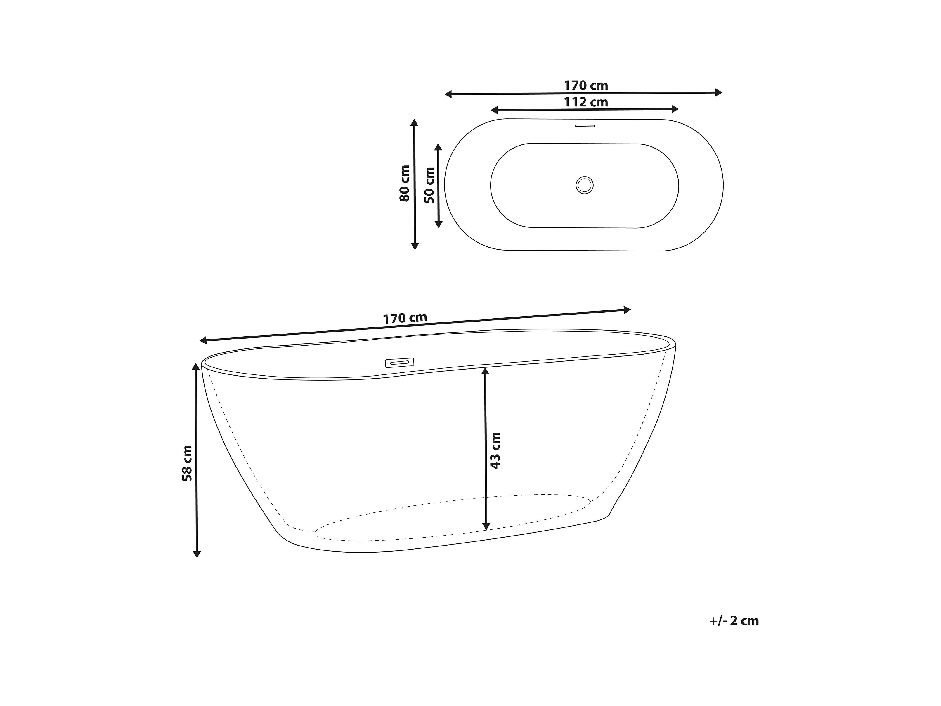 Wanna wolnostojąca CAYMAN 170 x 76 cm Czarny/ biały