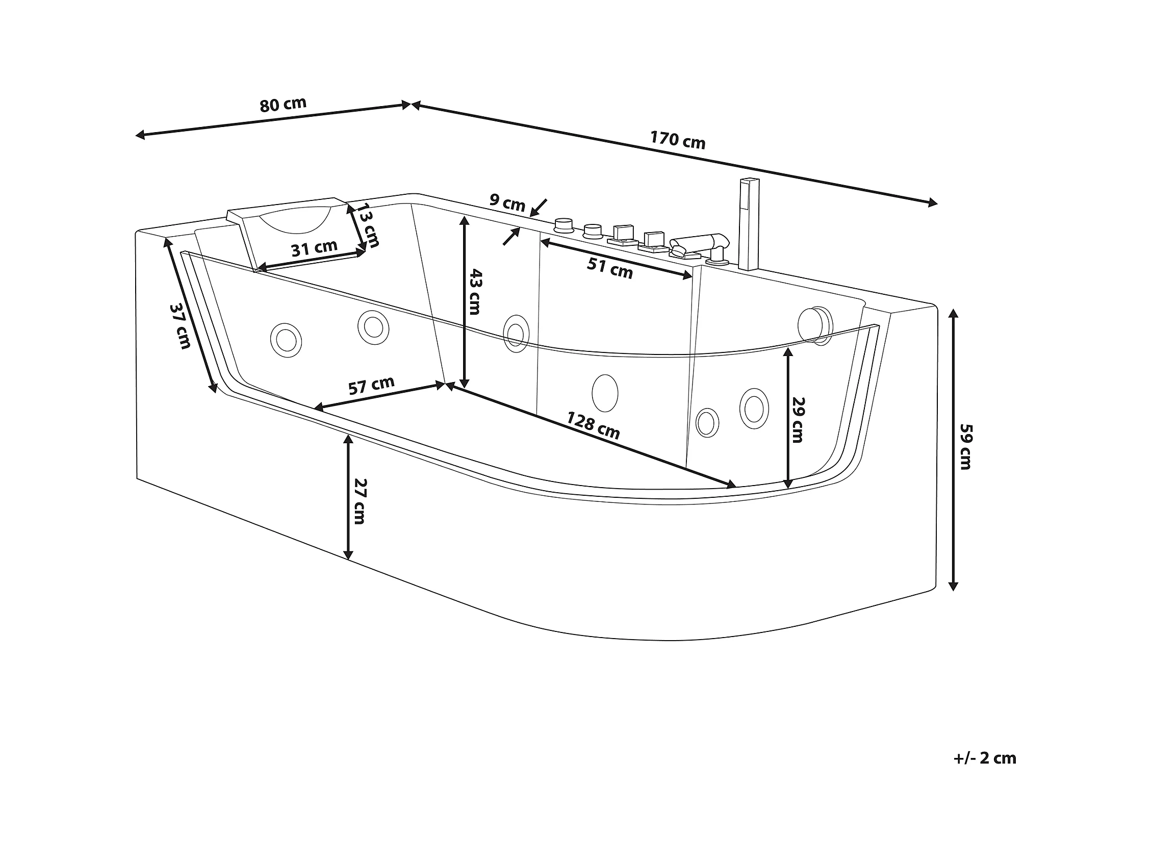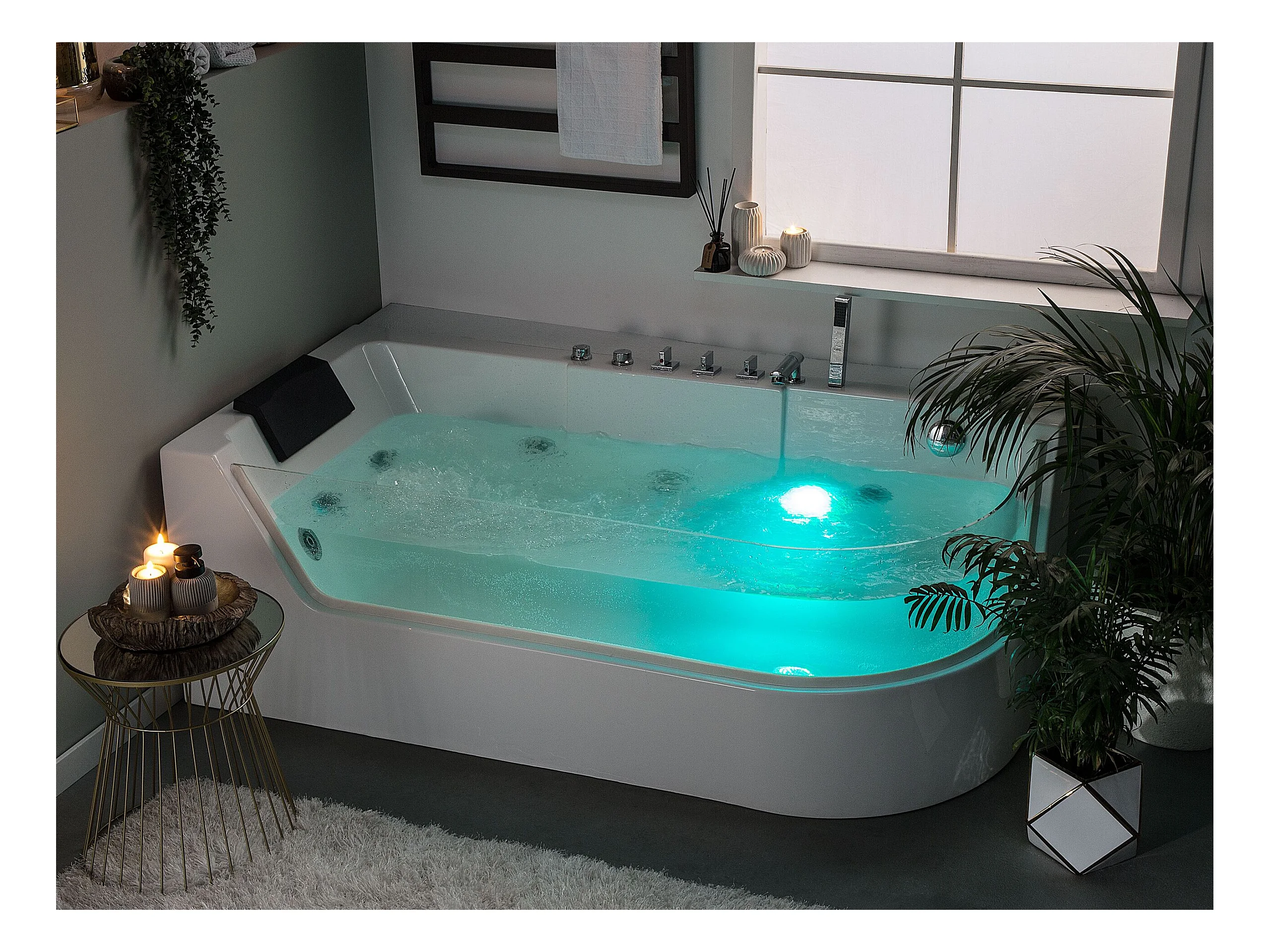 Wanna narożna z hydromasażem LED ACUARIO Prawostronny 170 x 80 cm Biały