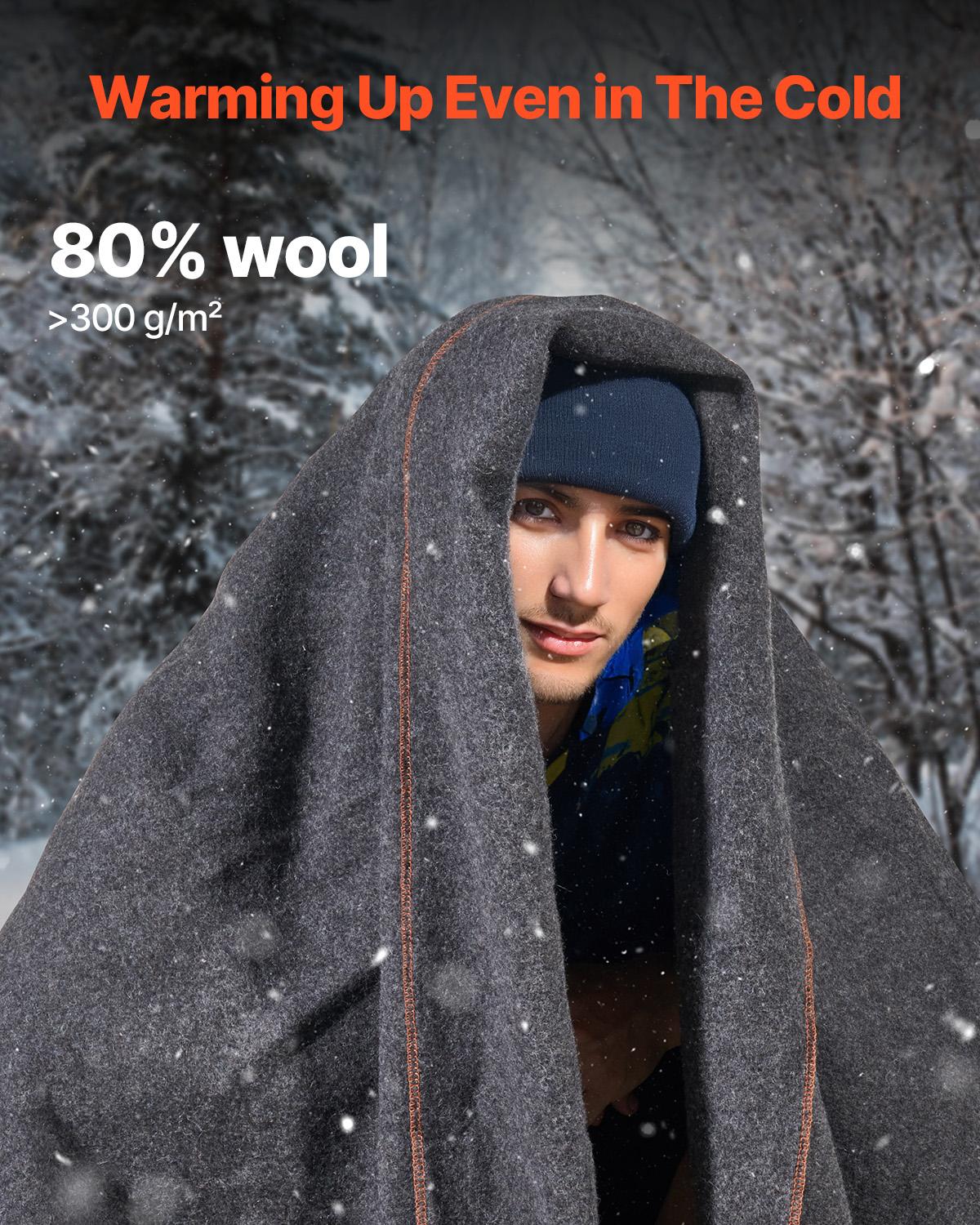 Wełniany Koc Kempingowy SucceBuy 162,56 cm x 223,52 cm Jasnoszary Ciepły na Zewnątrz