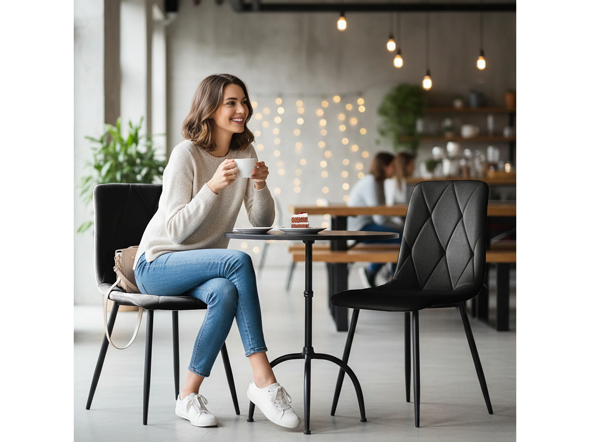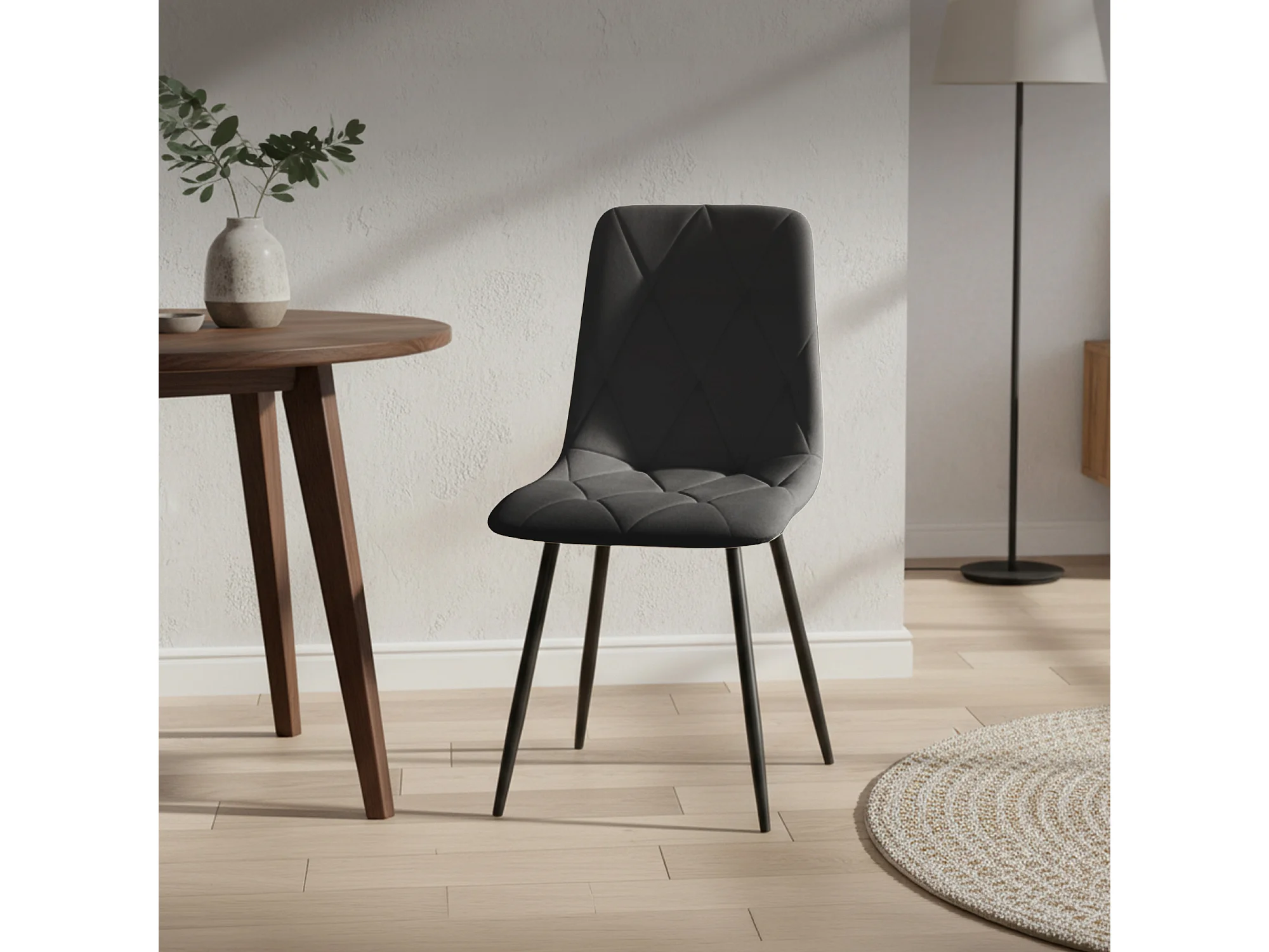 Welurowe krzesło tapicerowane pikowane Czarne MILO Czarne nogi
