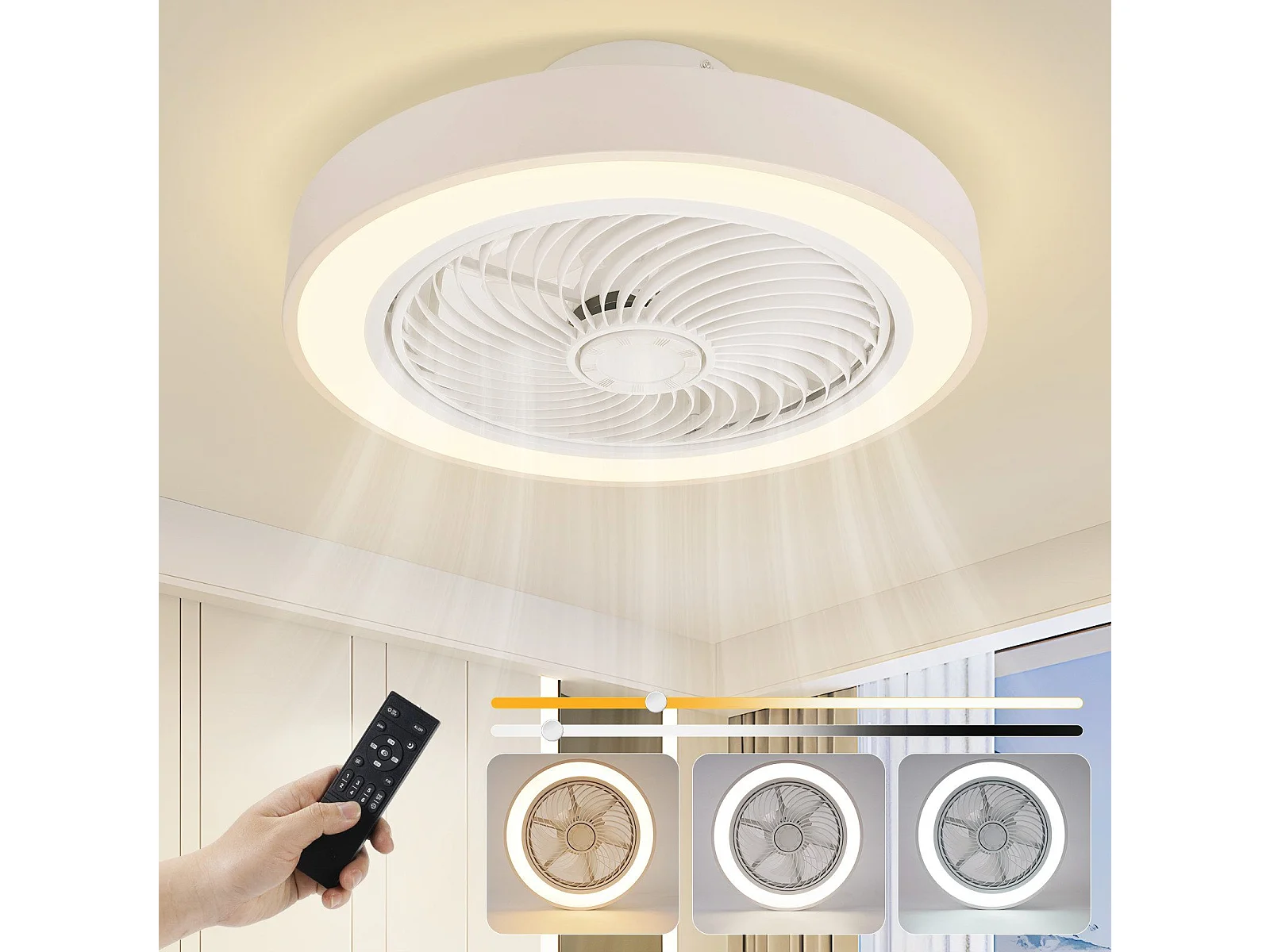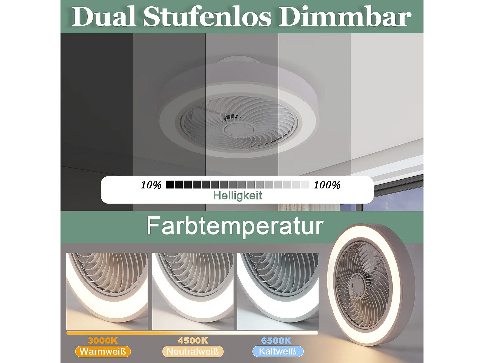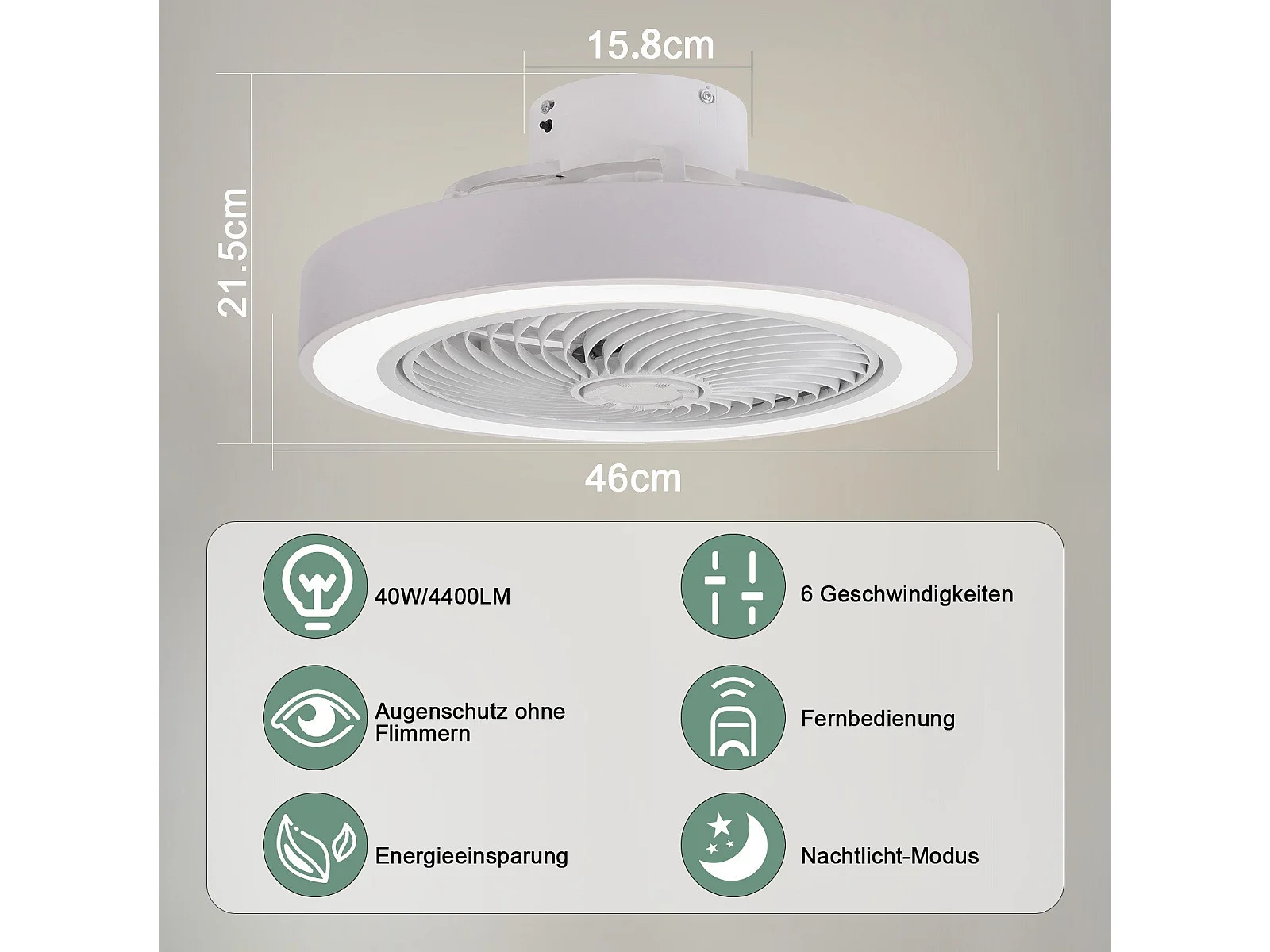 Wentylator sufitowy LED NETTLIFE z oświetleniem 40W Cichy z pilotem zdalnego sterowania, ściemniaczem, 6-biegowy timer