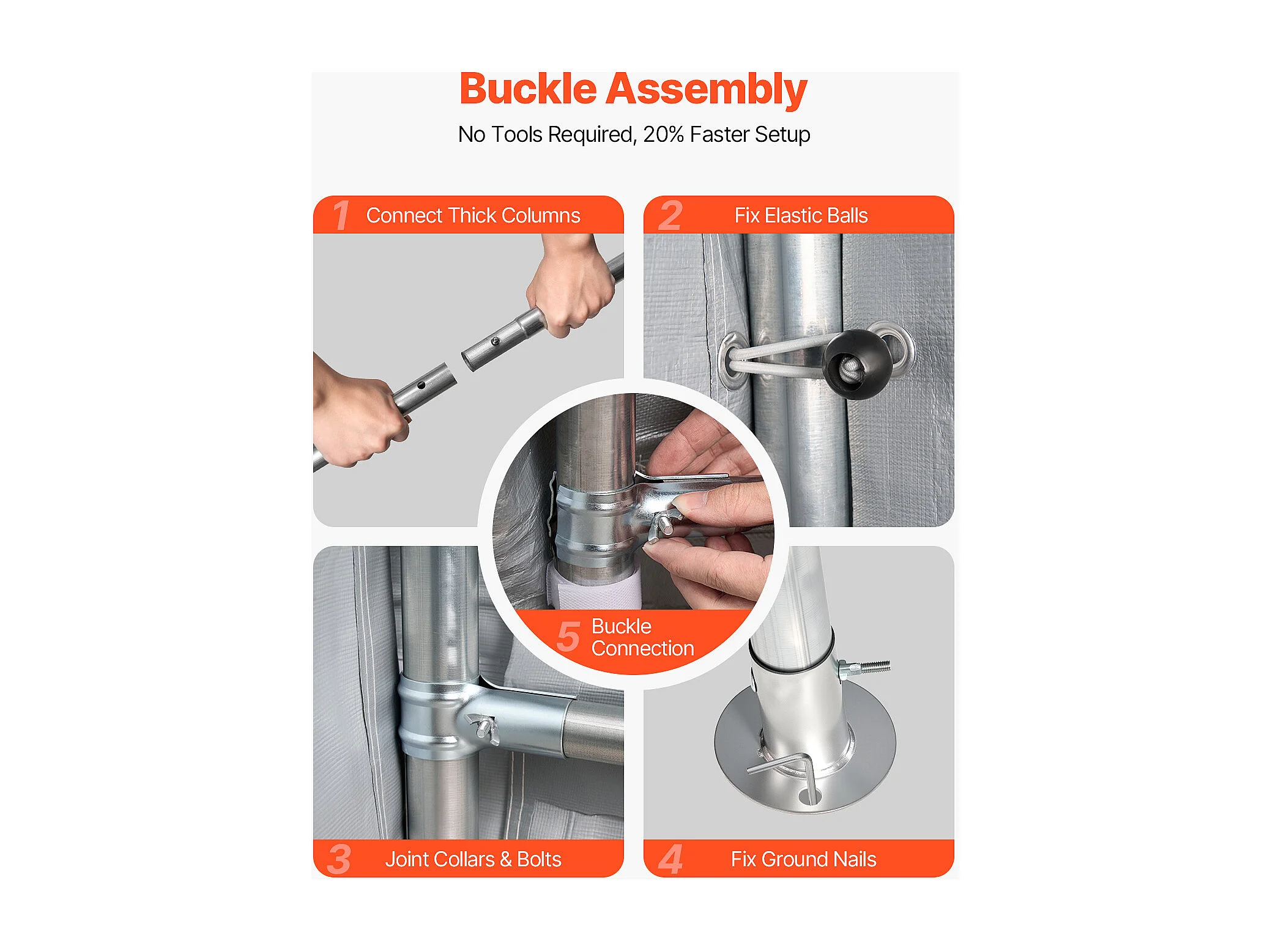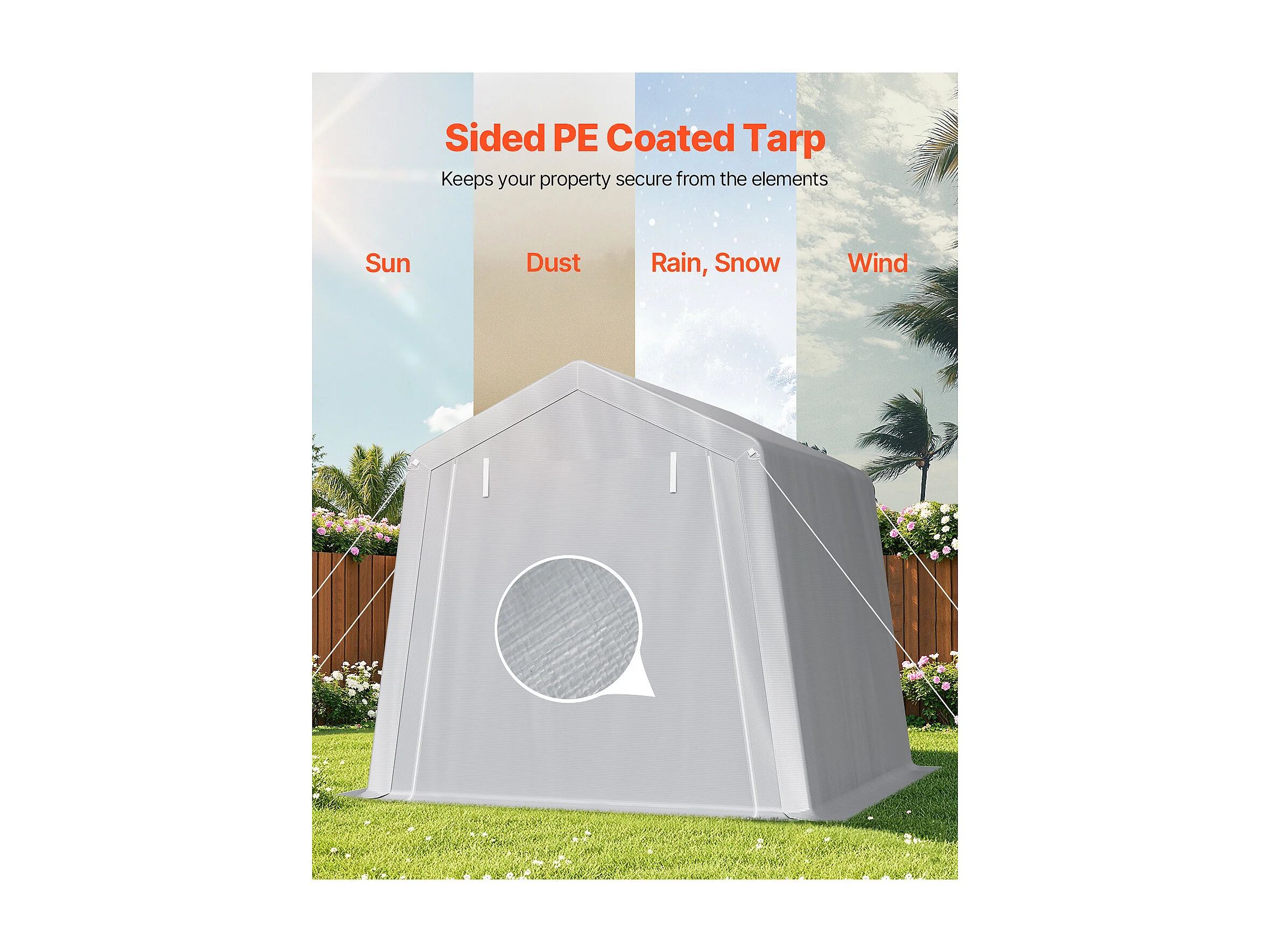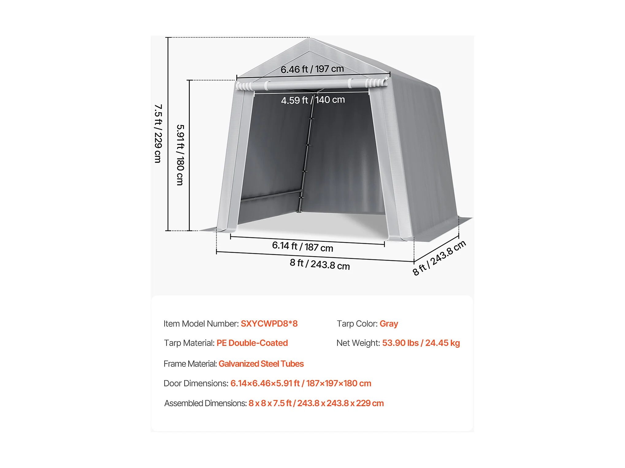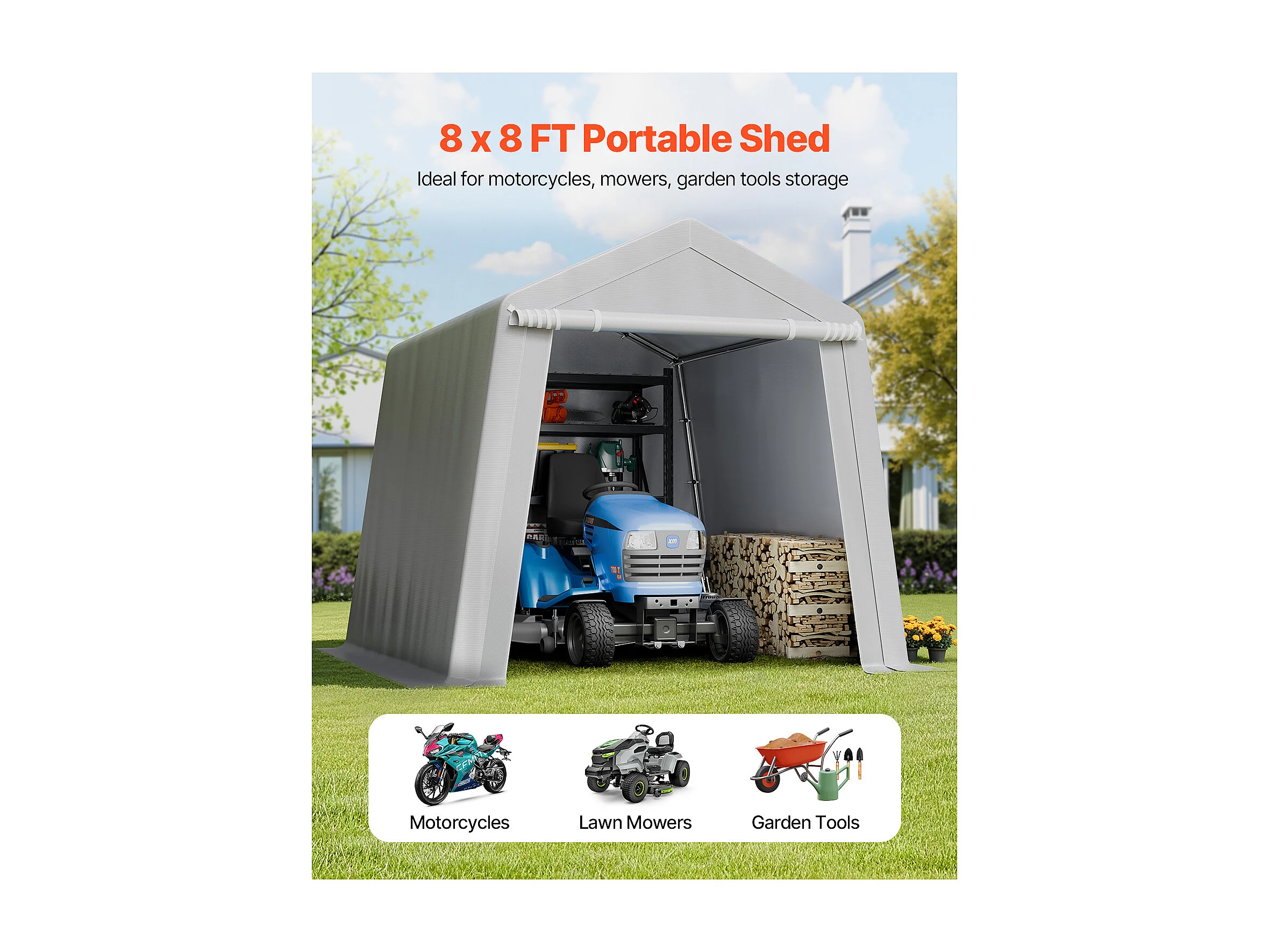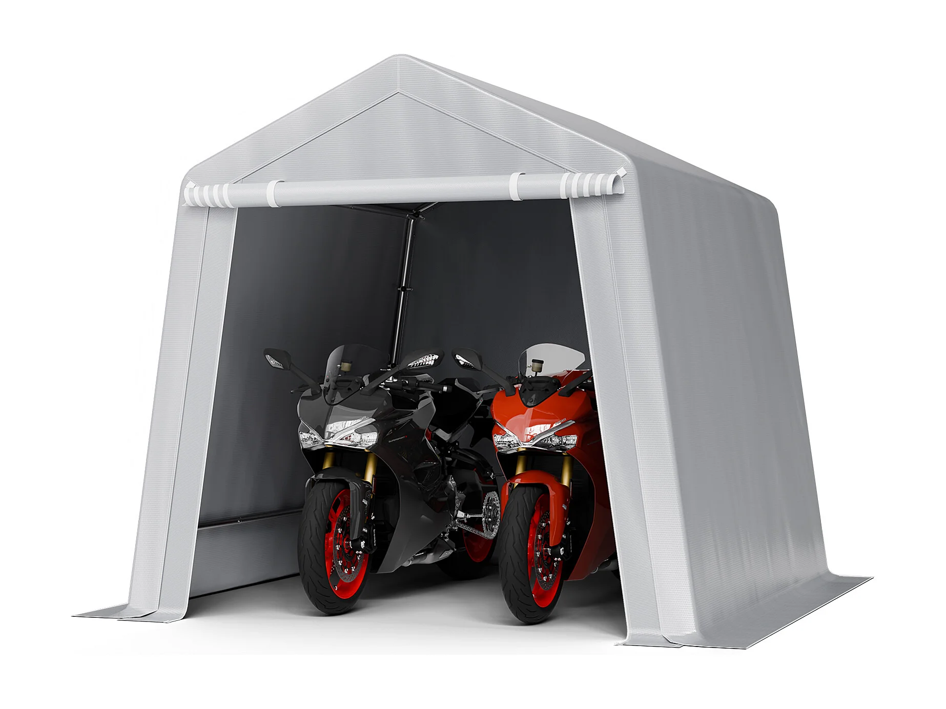 Wiata Ogrodowa SucceBuy, 245 x 245 cm, Namiot do Przechowywania, z Zamykaną na Zamek Błyskawiczny Roletą, Garaż Zewnętrzny na Motocykle, Rowery, Szary