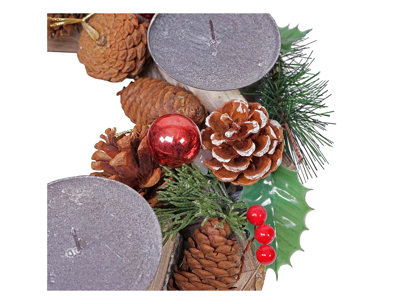Wianek adwentowy MCW-H49 drewniany z czerwonymi świecami, w zestawie 4 świeczki czerwone