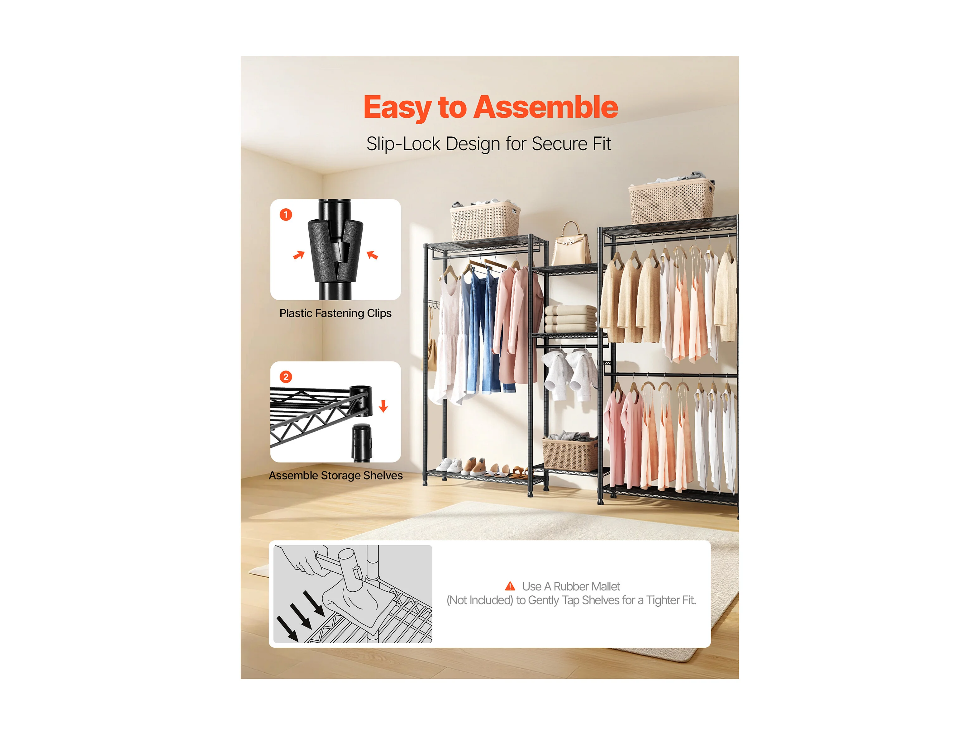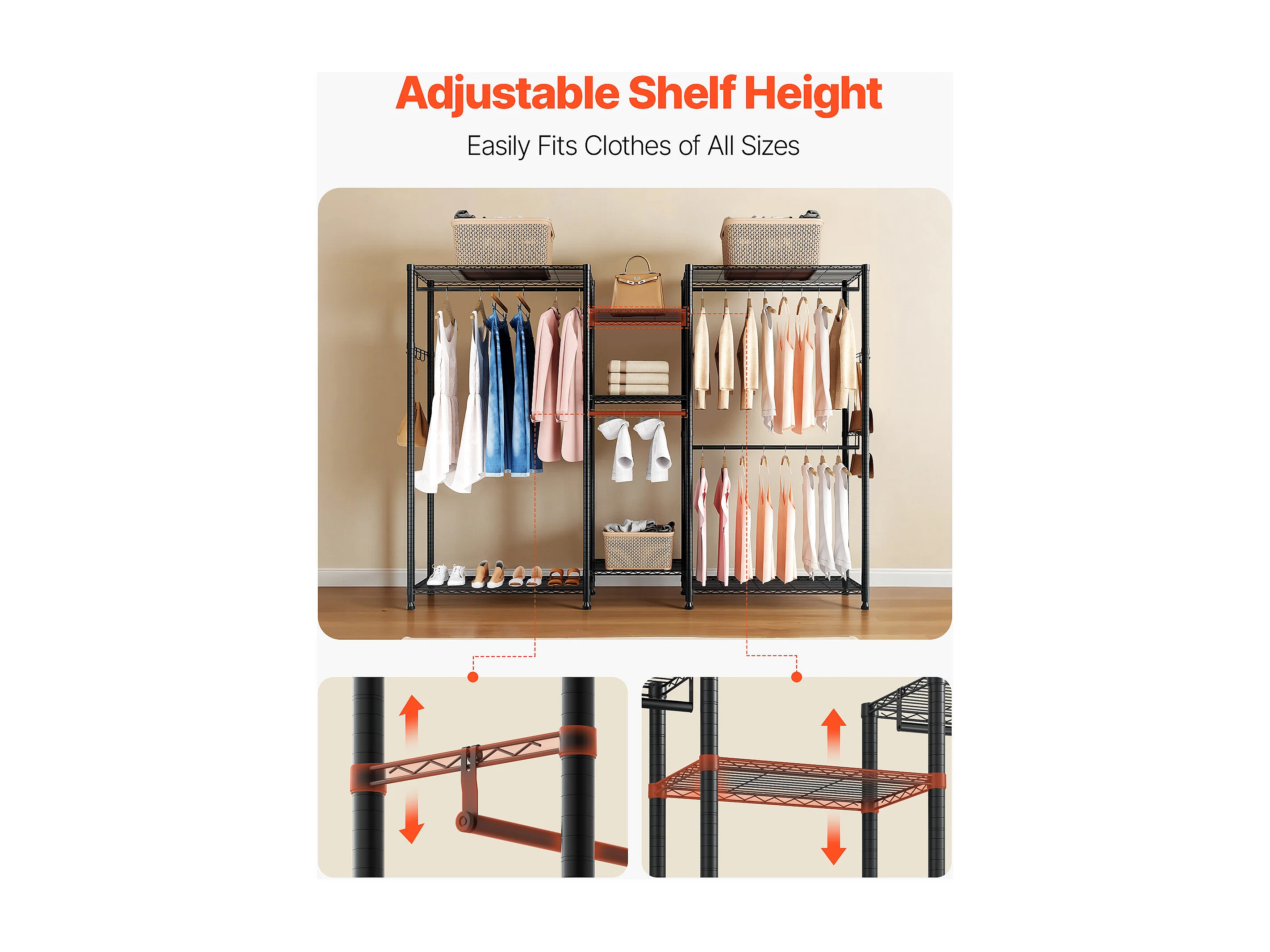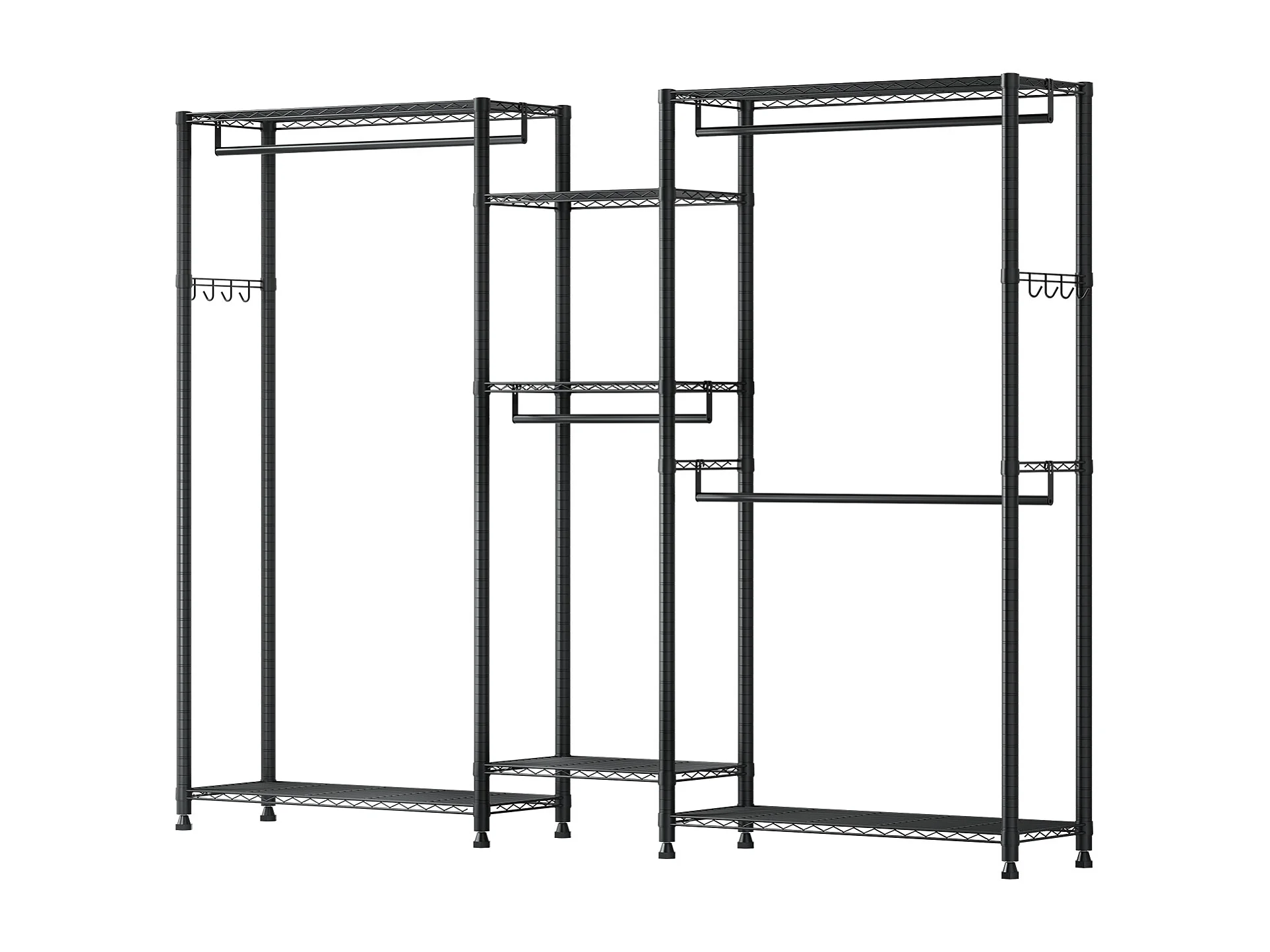 Wieszak na Ubrania SucceBuy z 7 Regulowanymi Półkami, Wieszak ze Stalową Ramą, Szafa na Ubrania Nośność 385,5 kg, z 4 Drążkami