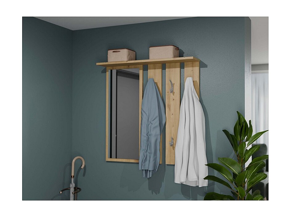 Wieszak Opal | Dąb Artisan | 85x15x82 | Lustro z Półką i Wieszakami