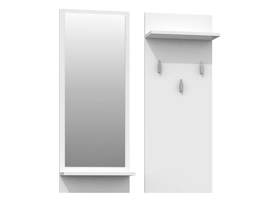 Wieszak Riva | Biały | 70x16x90 | Wieszak Ścienny z Półką i Lustrem