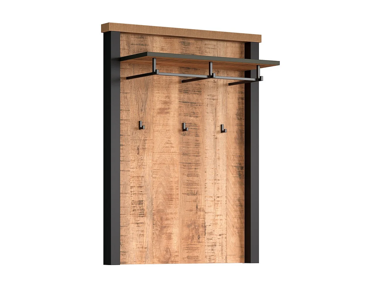 Regał z wieszakiem i ławą, 3 półki, kolor dąb/czarny.