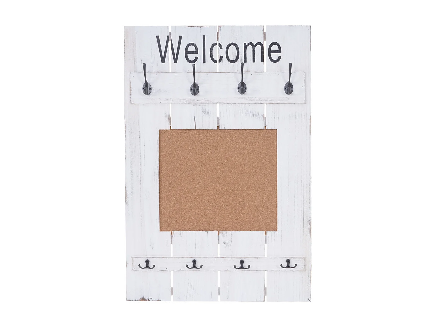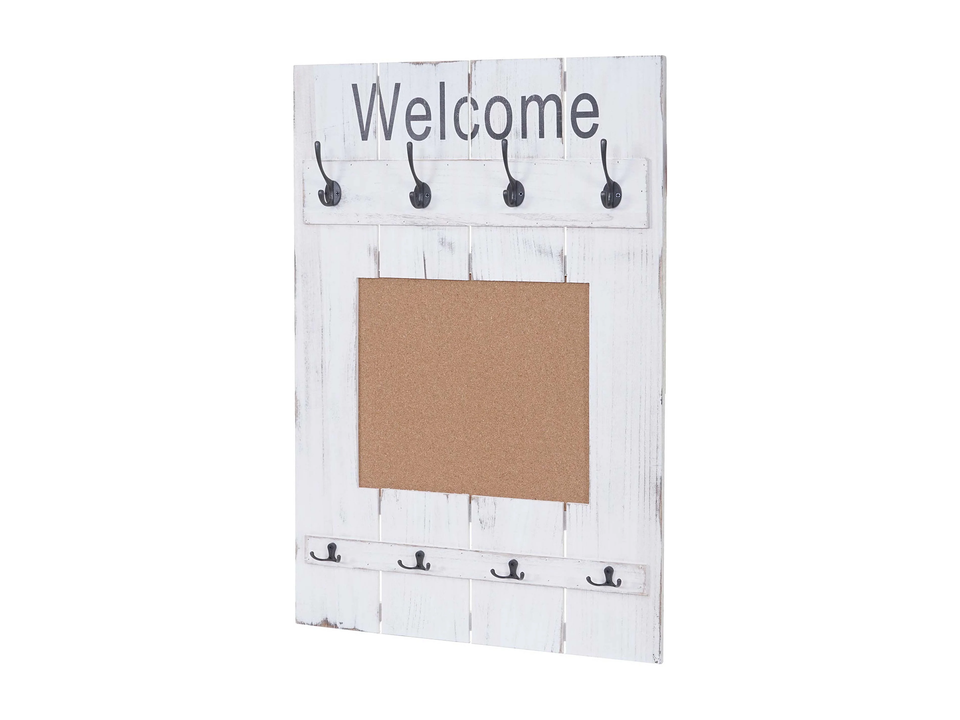 Wieszak ścienny MCW-C89 z tablicą korkową, biały, shabby chic