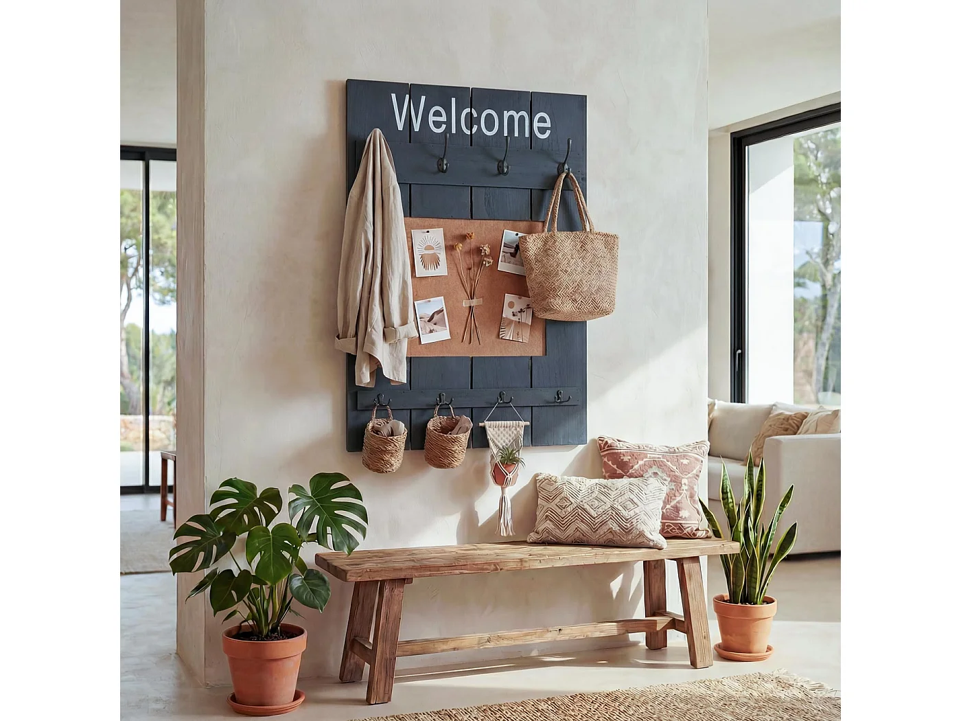 Wieszak ścienny MCW-C89 z tablicą korkową, ciemnoszary, shabby chic