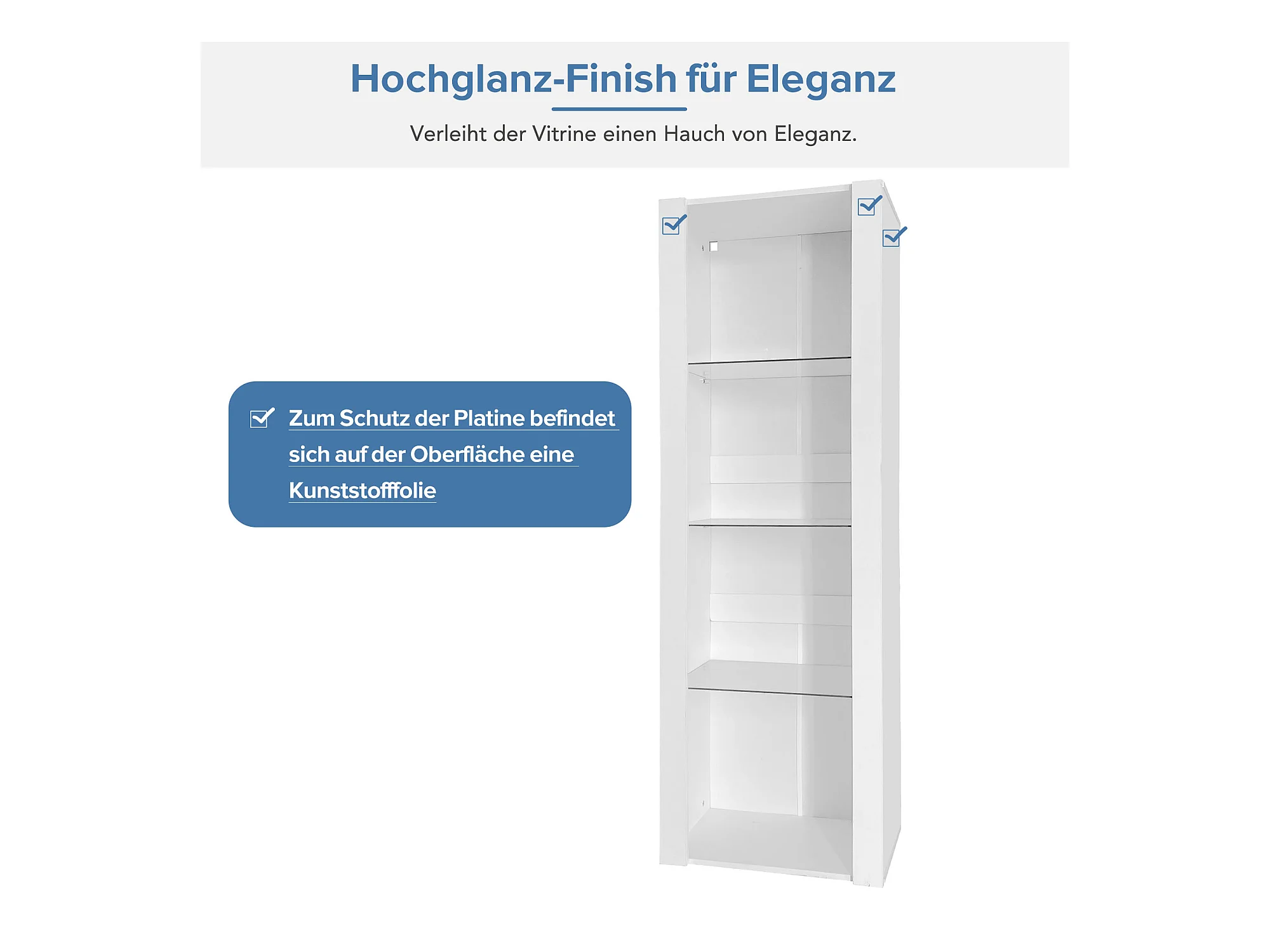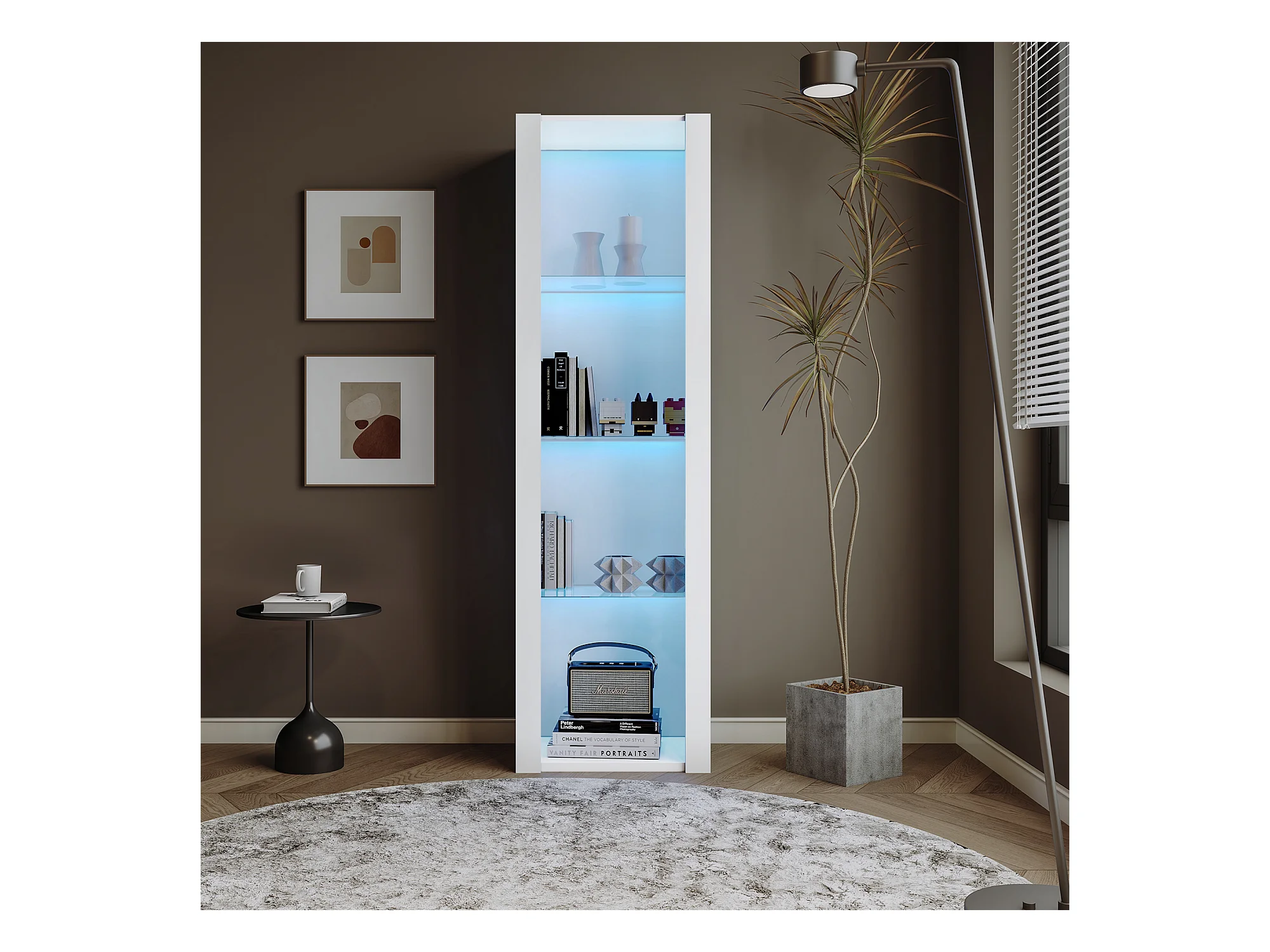 Witryna błyszcząca z diodami LED - 55 x 38 x 166 cm - 3 półki szklane - wysokie szafki do przechowywania - płyta wiórowa - biała