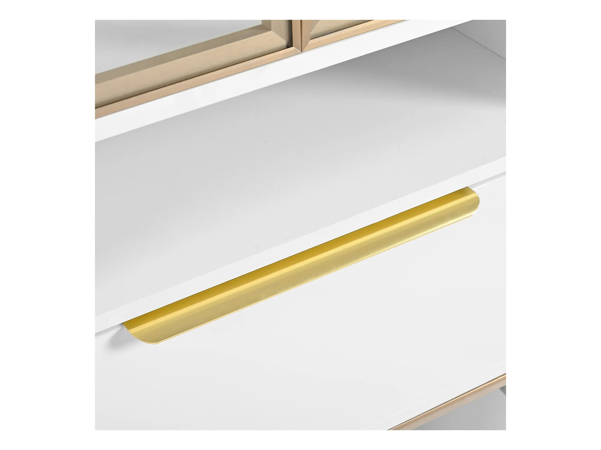 Biała witryna z oświetleniem LED - Witryna z 2 szklanymi drzwiami i 2 szufladami - 4 przegródki do przechowywania