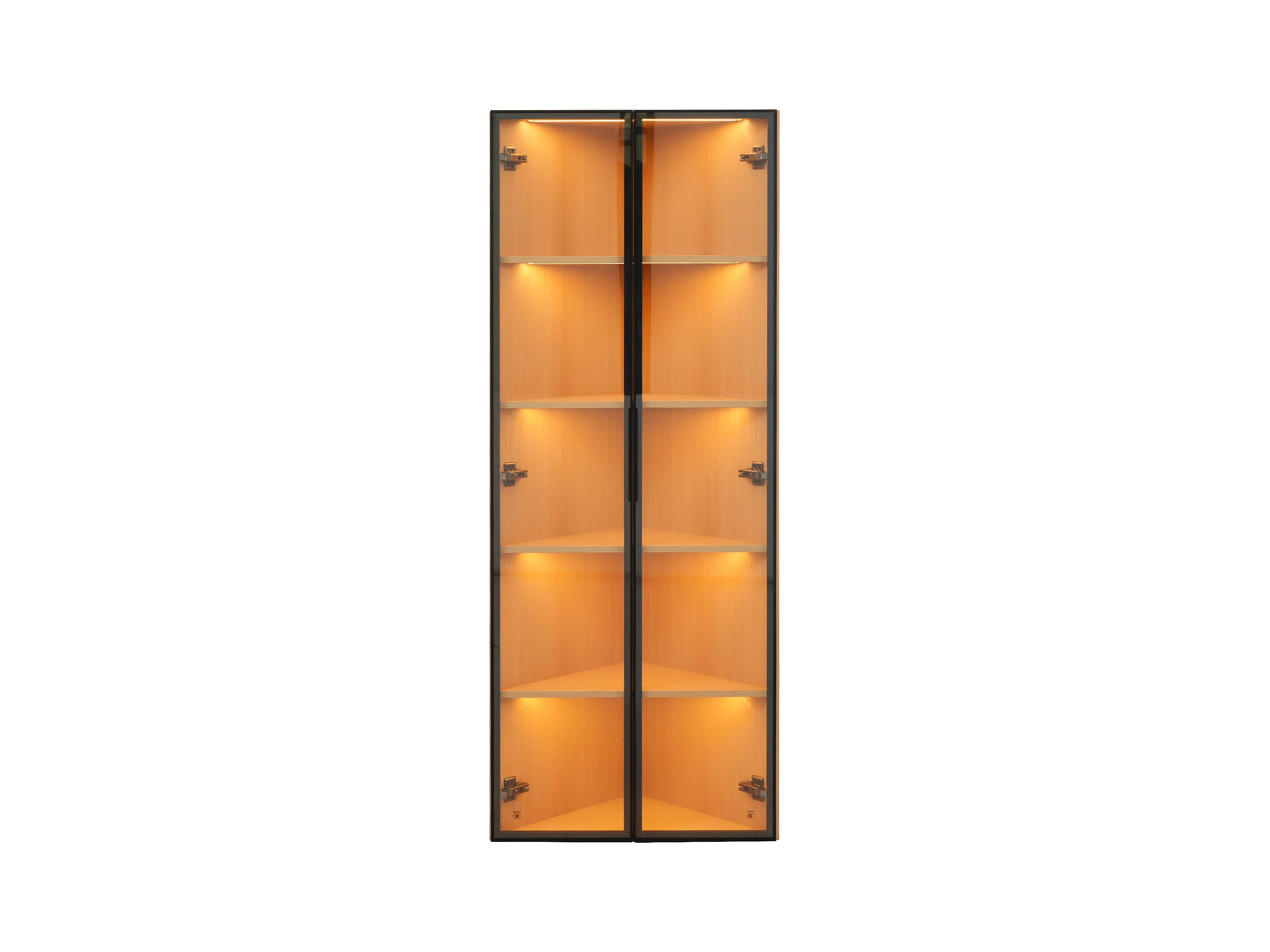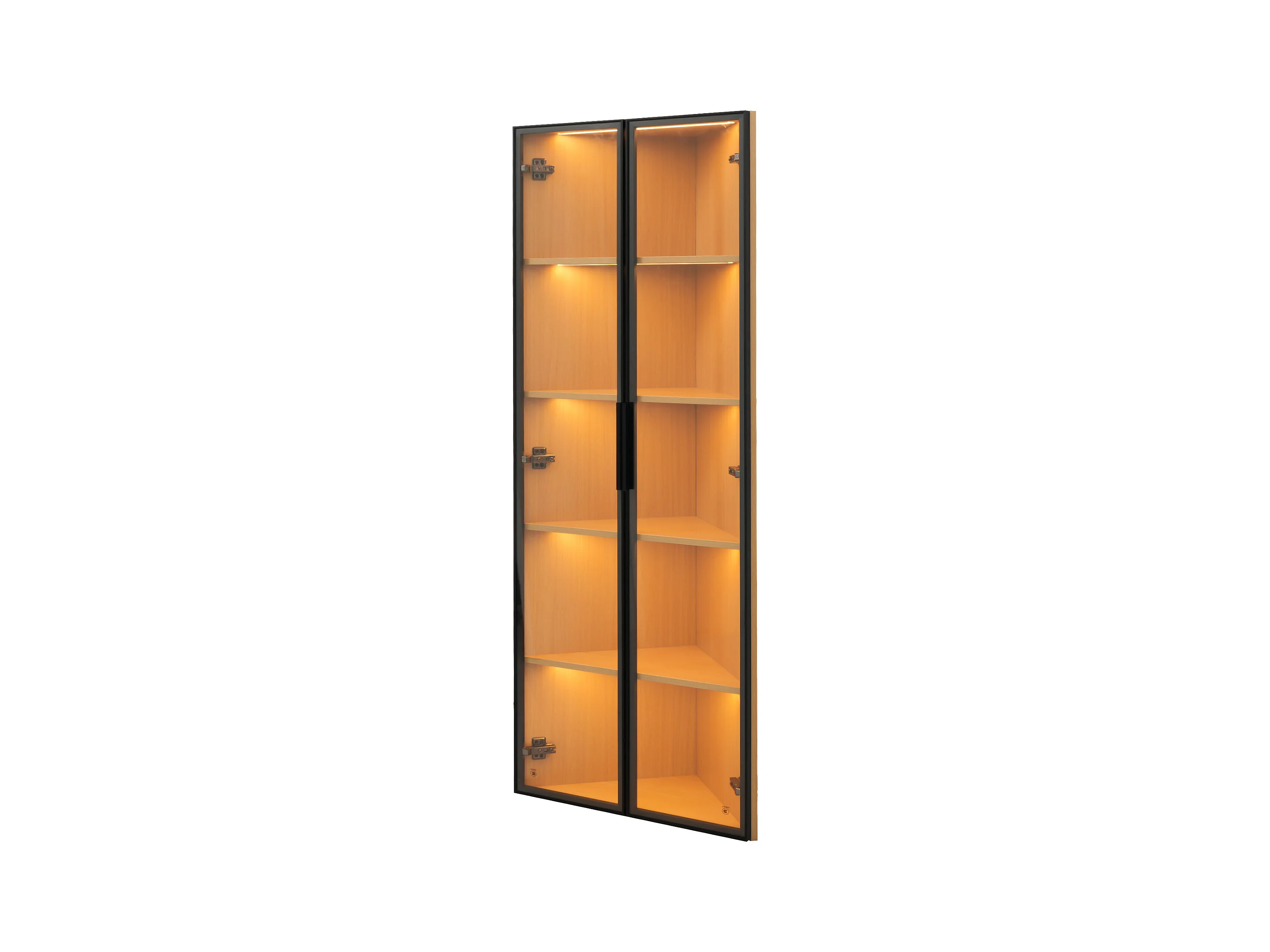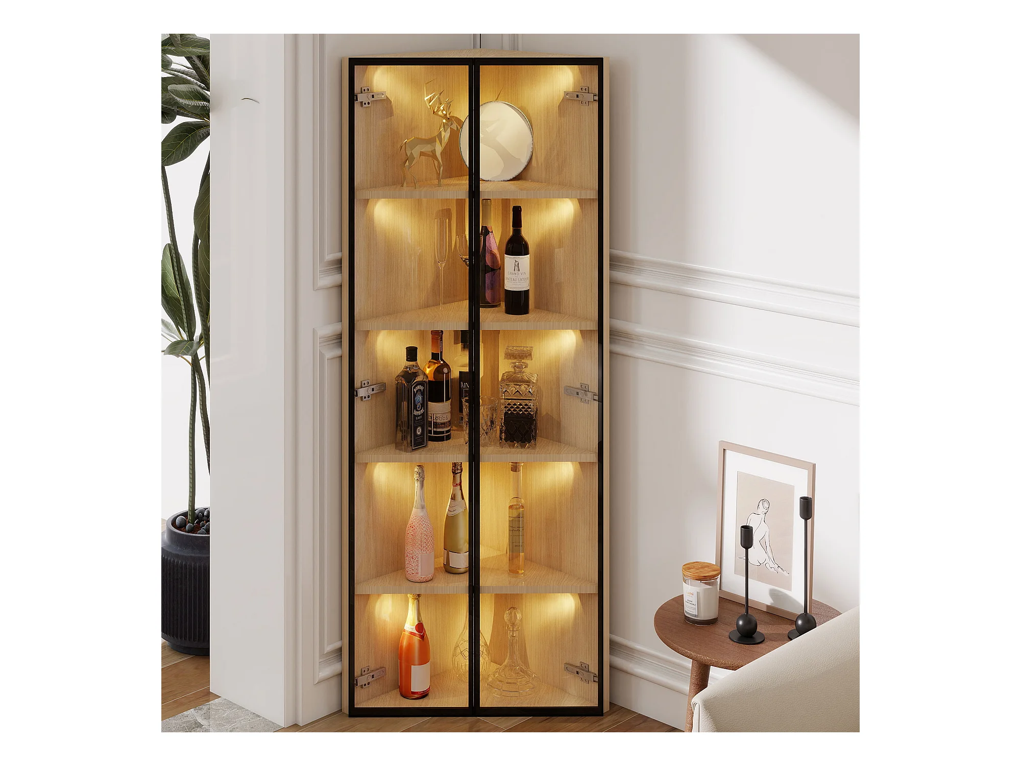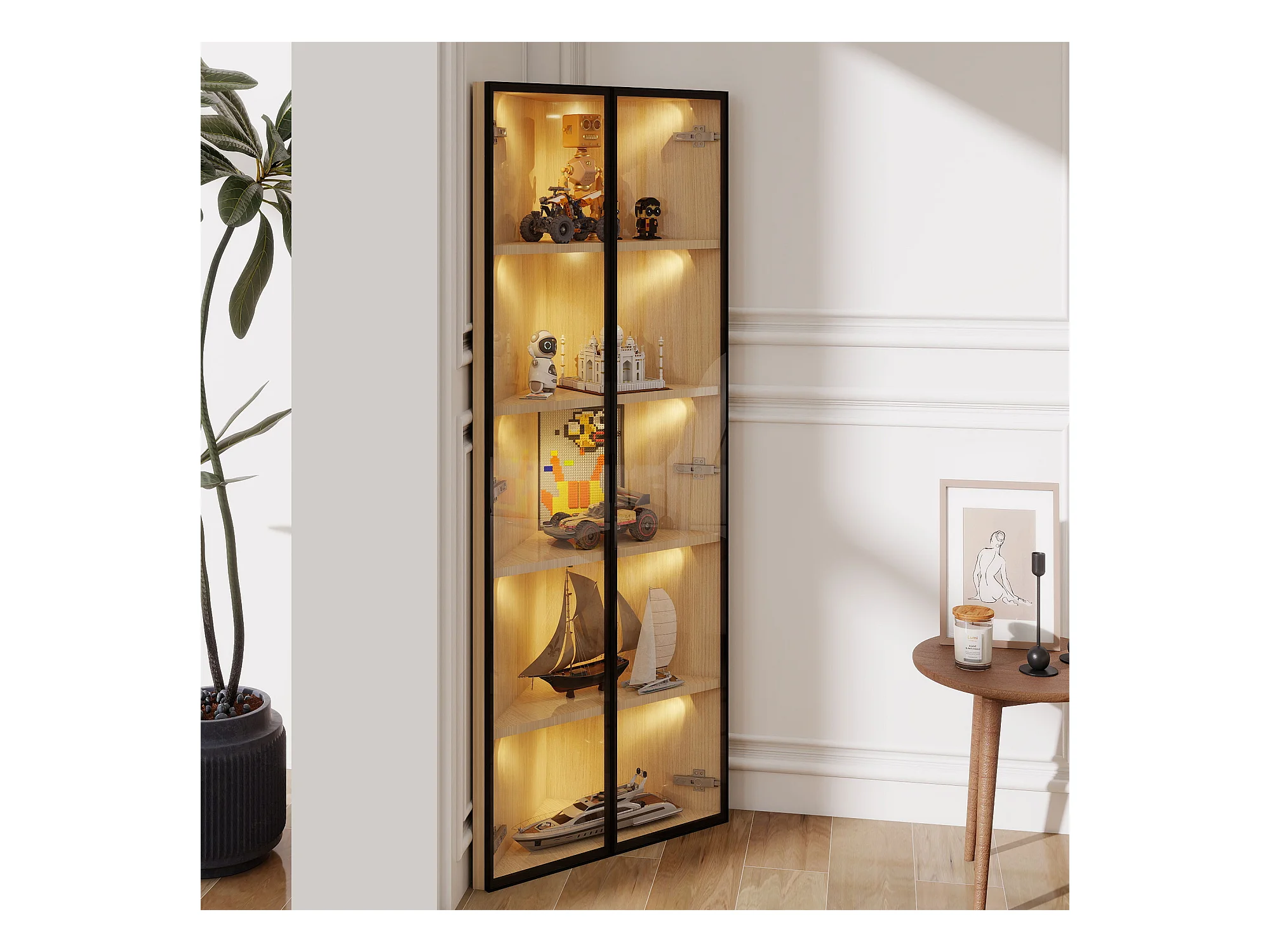 Witryna narożna 62×35×160 cm - z oświetleniem LED - 2 szklane drzwi - naturalny