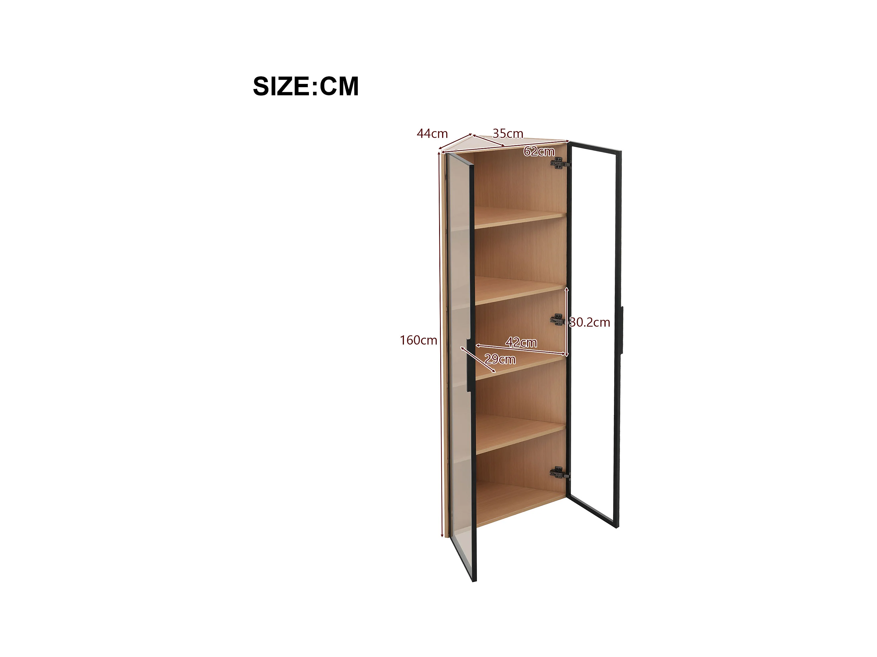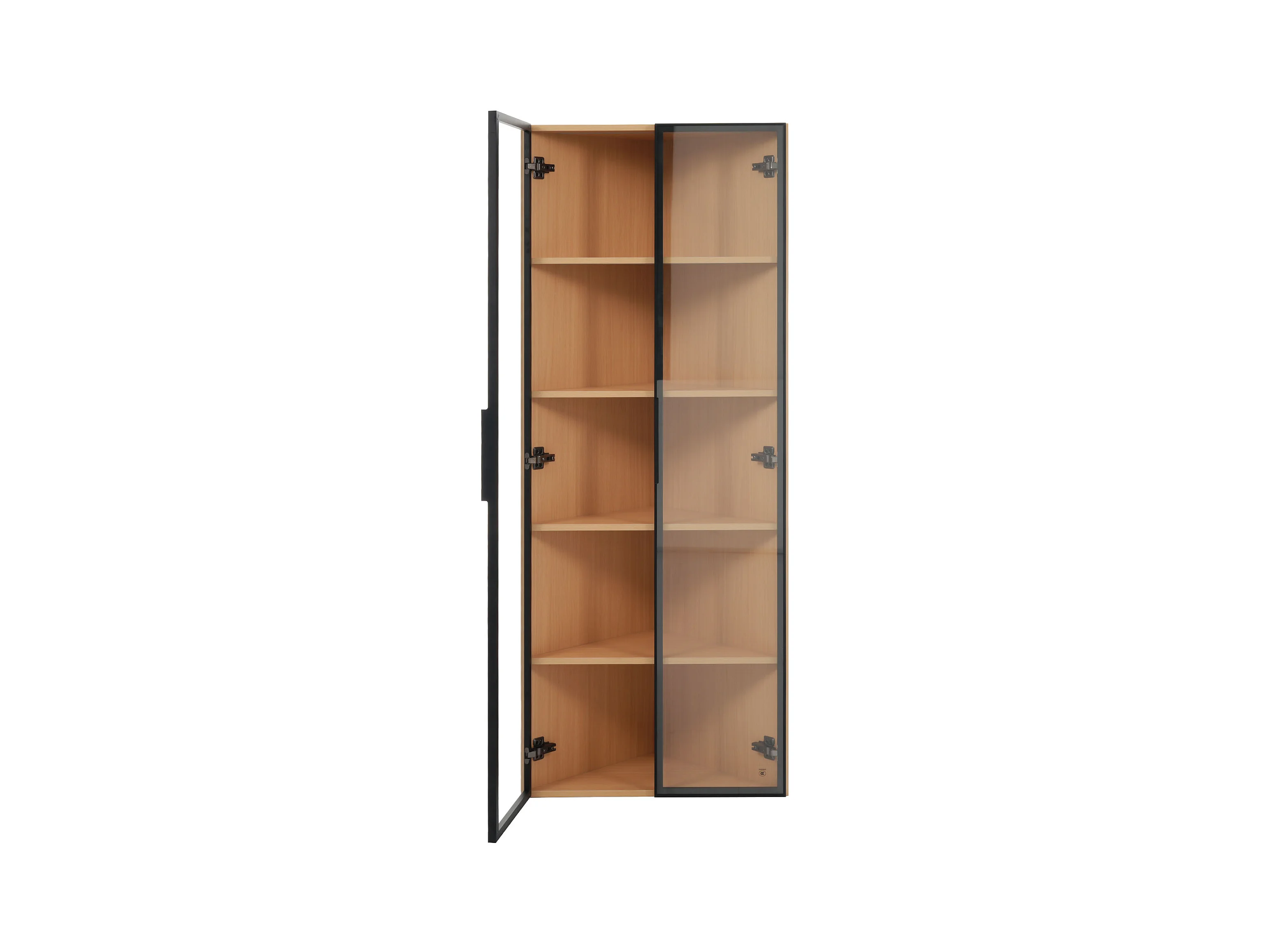 Wielokrotnego użytku witryna z wykończeniem w kolorze orzecha włoskiego - 75,5 x 35 x 164,5 cm - szklany front + półka + ukryta szuflada - płyta MDF - naturalna