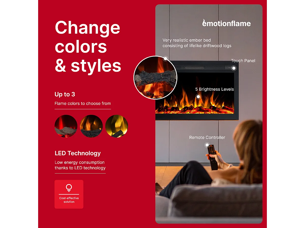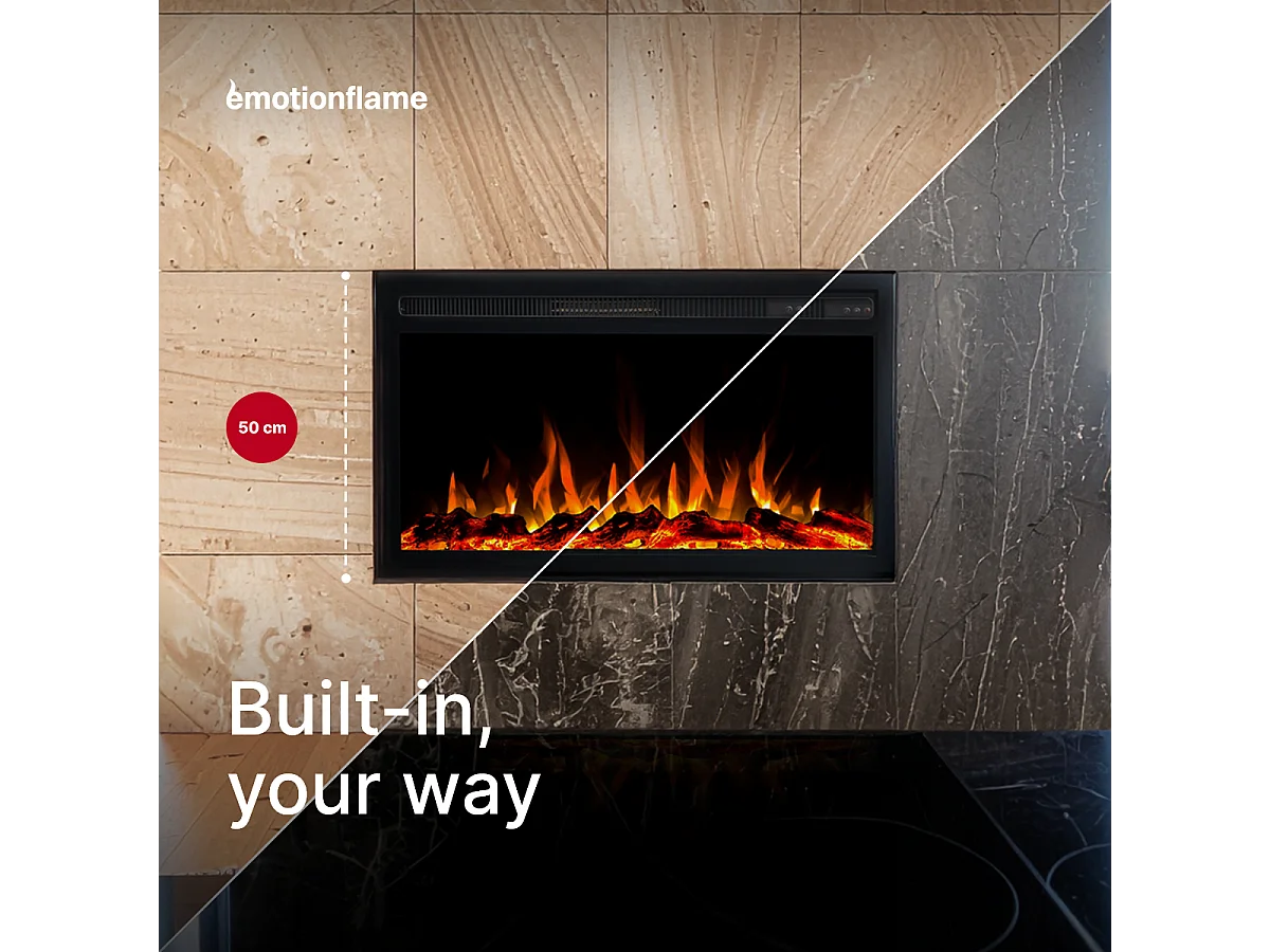 Wkład elektryczny INFINITY do kominka elektrycznego - ogień premium - do zabudowy - 76x14x50 cm - kominek LED z grzaniem 750/1500 W