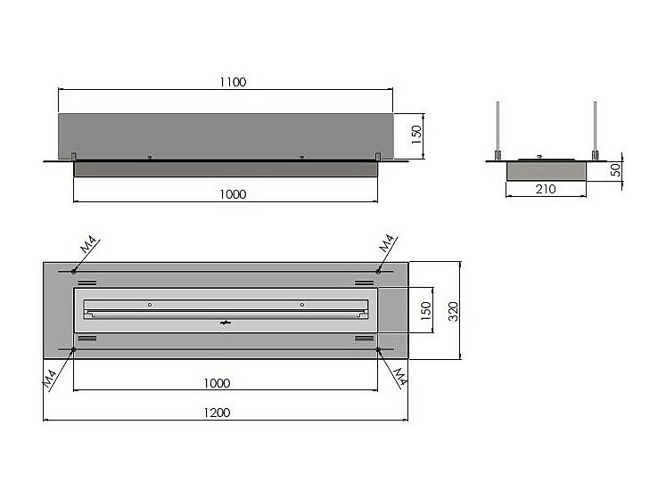 Kominek bioetanolowy Frame 1200 SimpleFire ze stali nierdzewnej do zabudowy ze szkłem