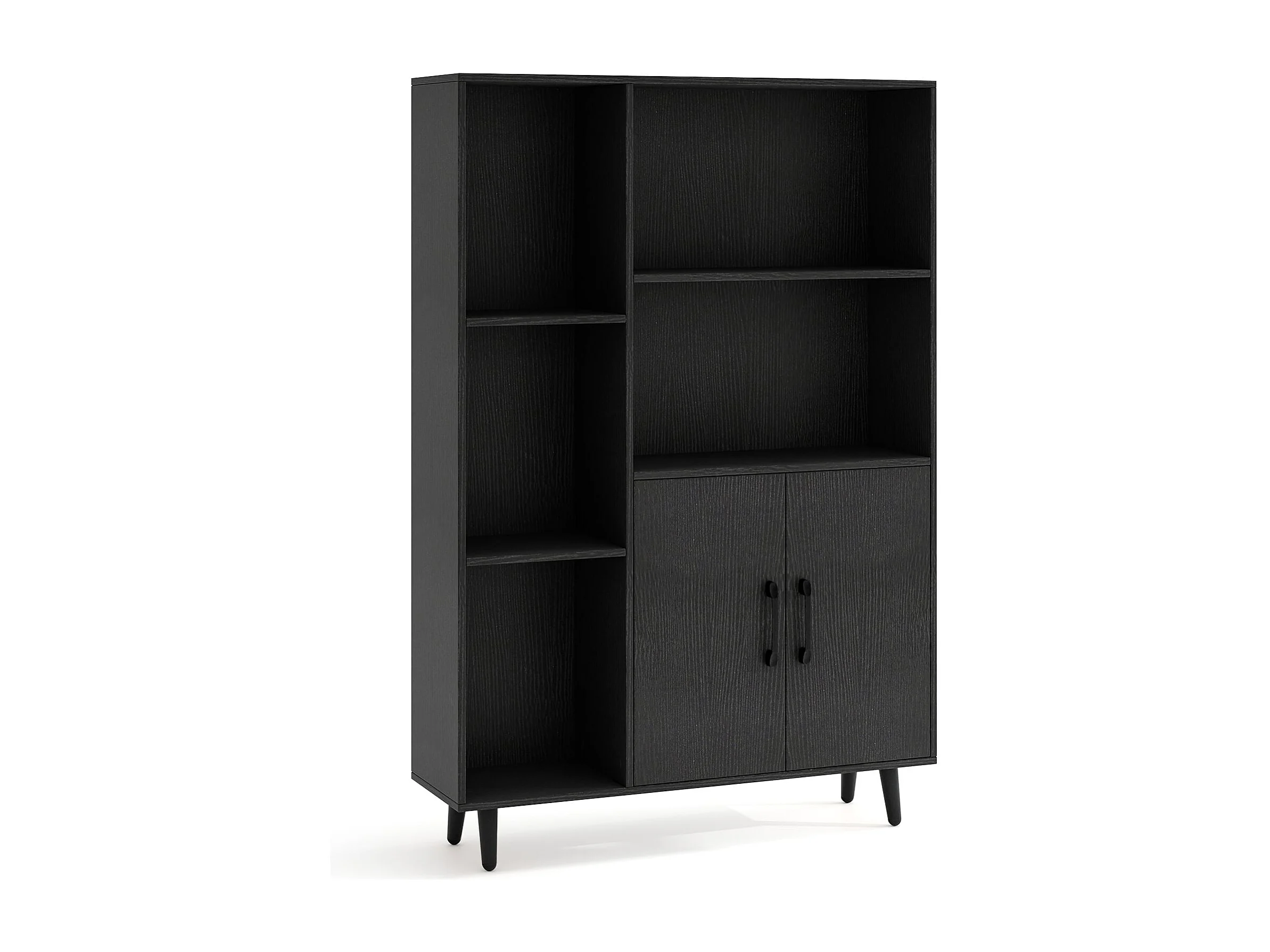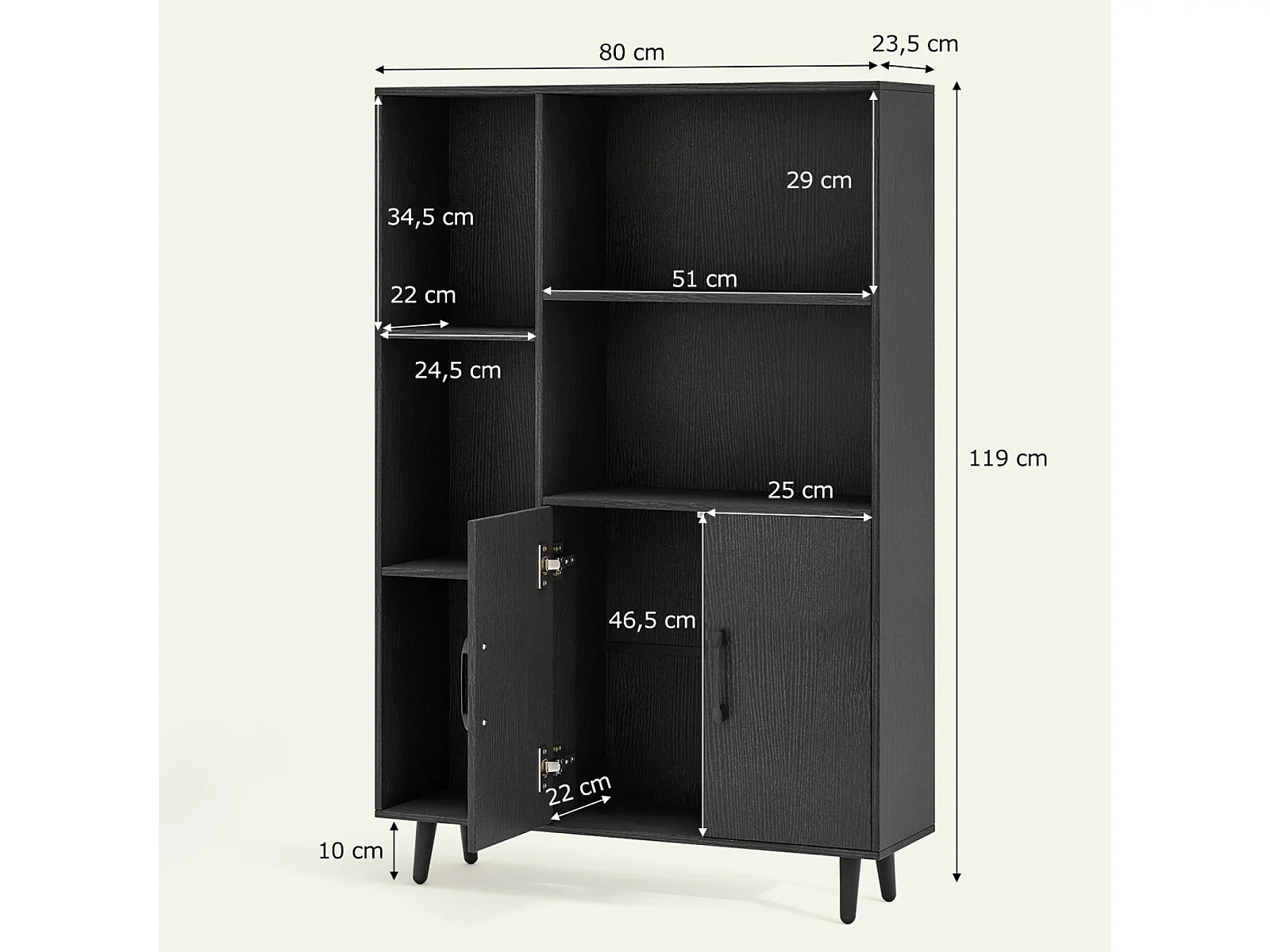 Wolnostojący regał z zamykaną szafką Czarny regał na książki