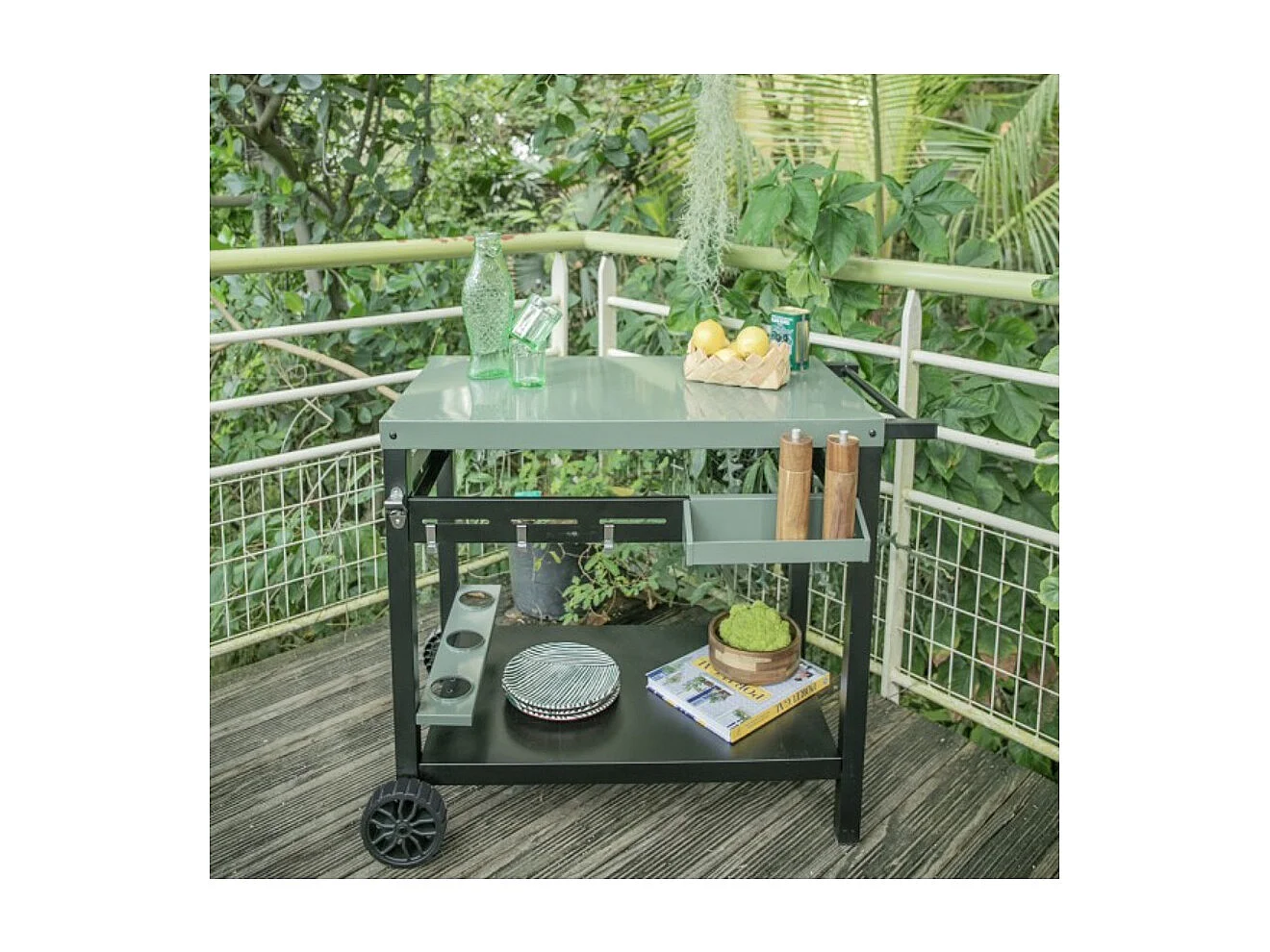 Wózek do planchy Livoo GS167V kaki 100,5x63x81 cm z miejscem do przechowywania, otwieraczem i kółkami