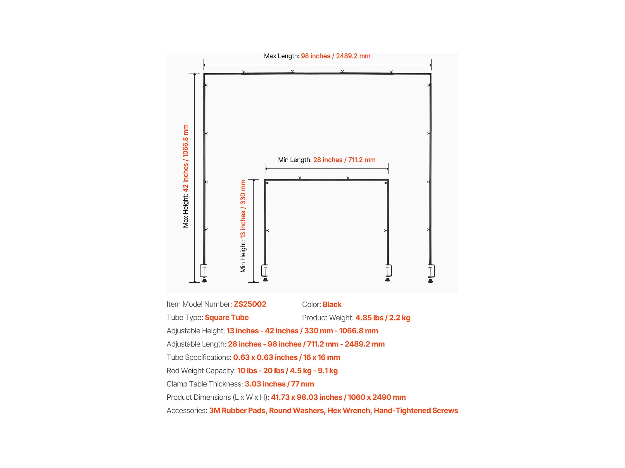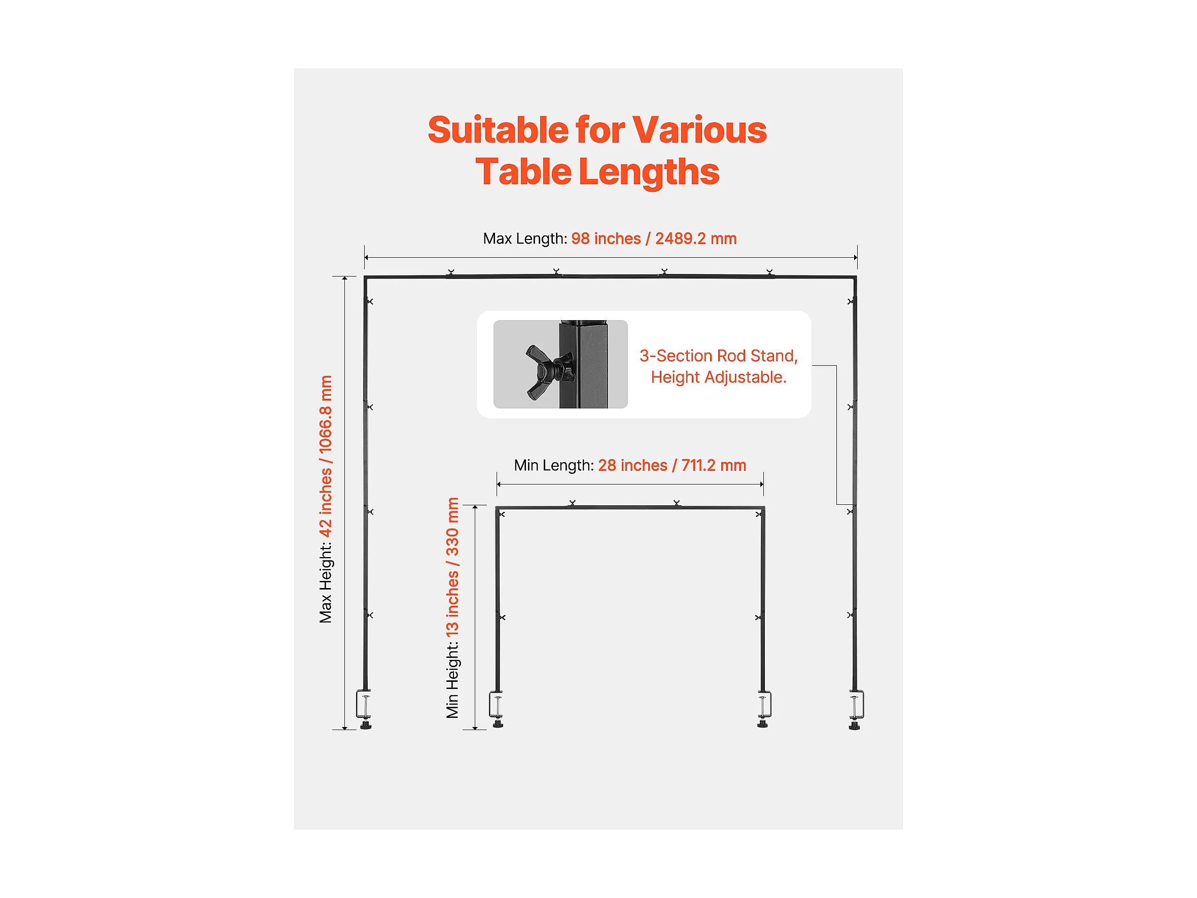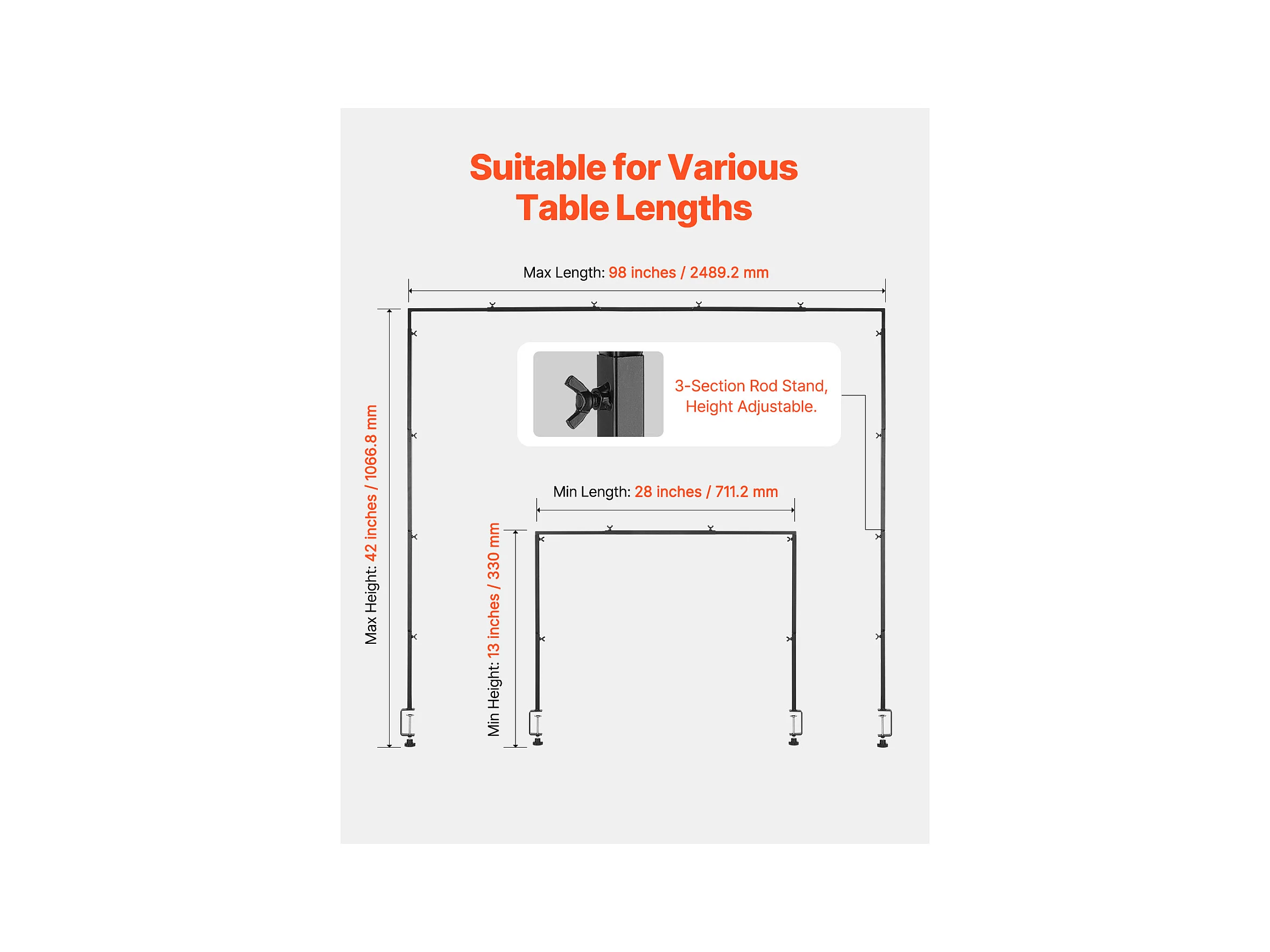 Wspornik Pręta Stołu SucceBuy z Zaciskami, Wspornik Łuku Stołu, Wysokość Regulowana 33-107 cm Długość Regulowana 71.1-249 cm, Metalowa Ramka Łuku
