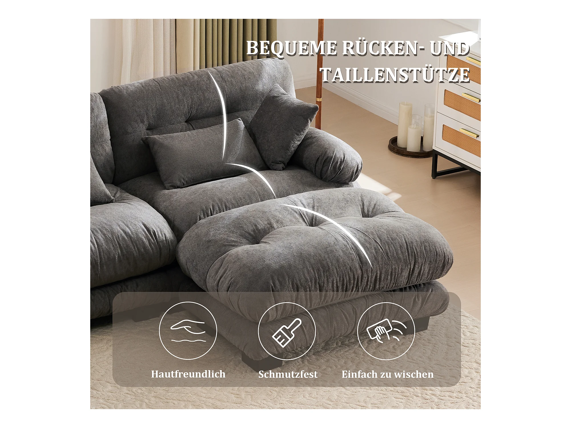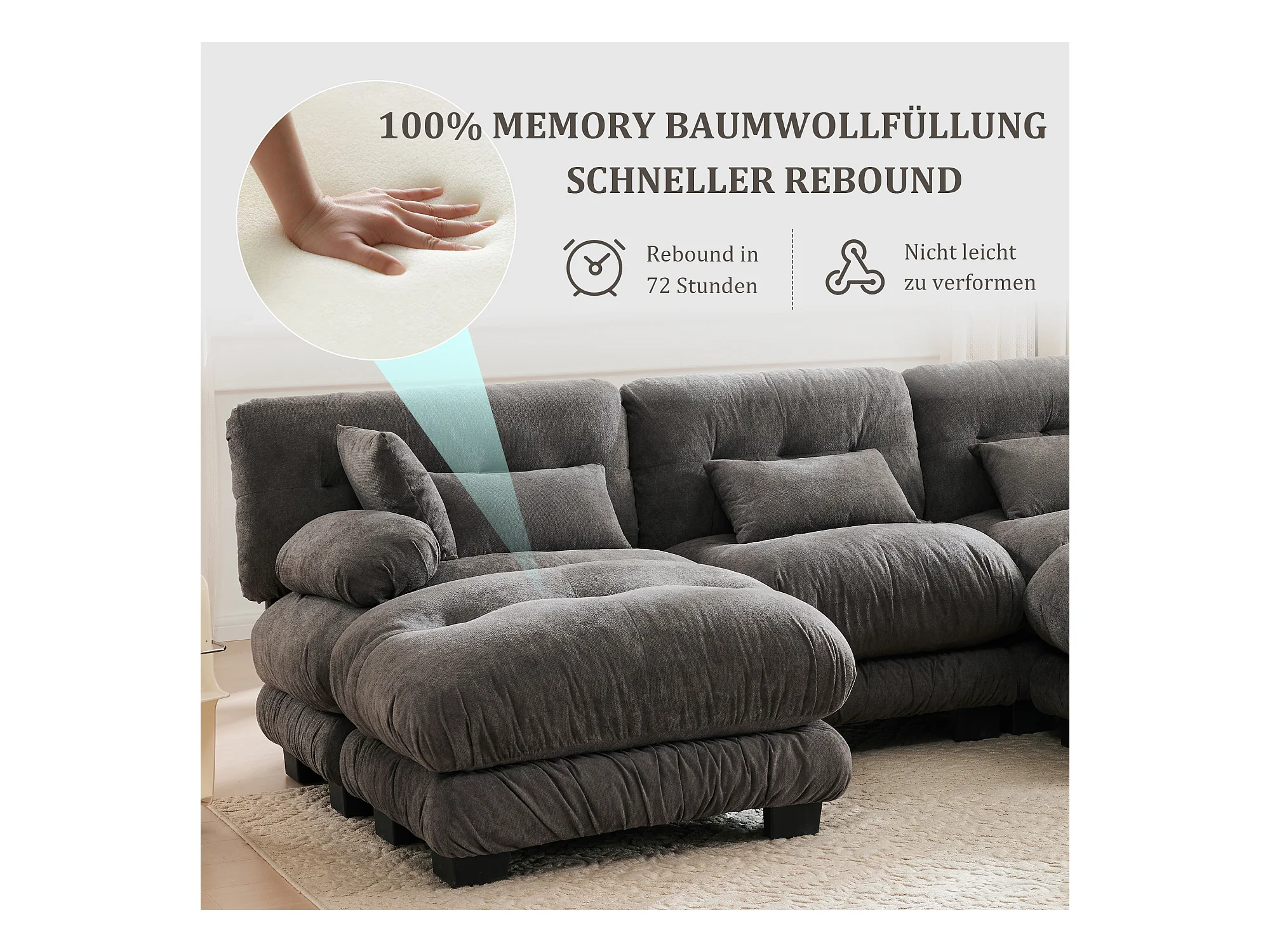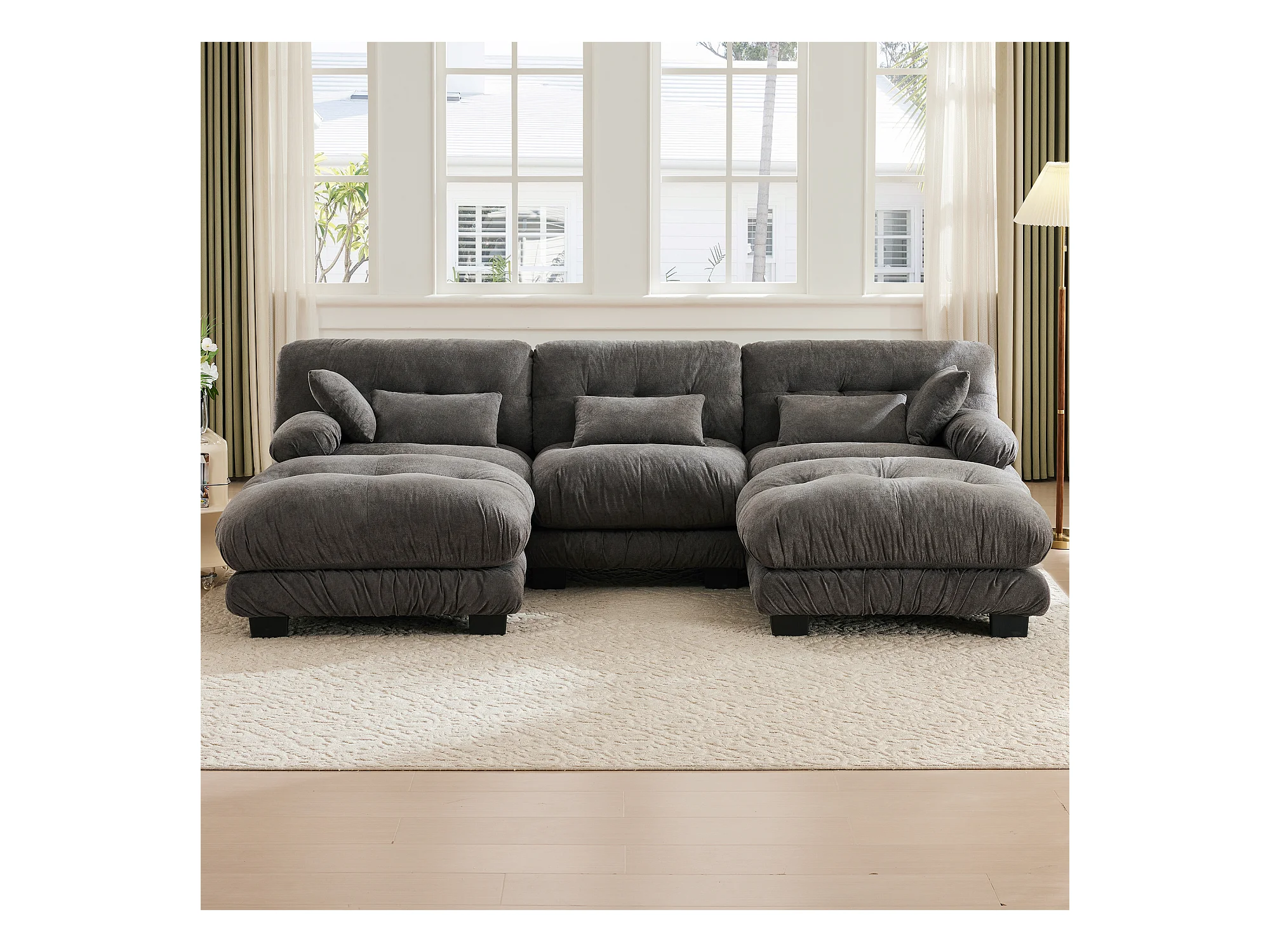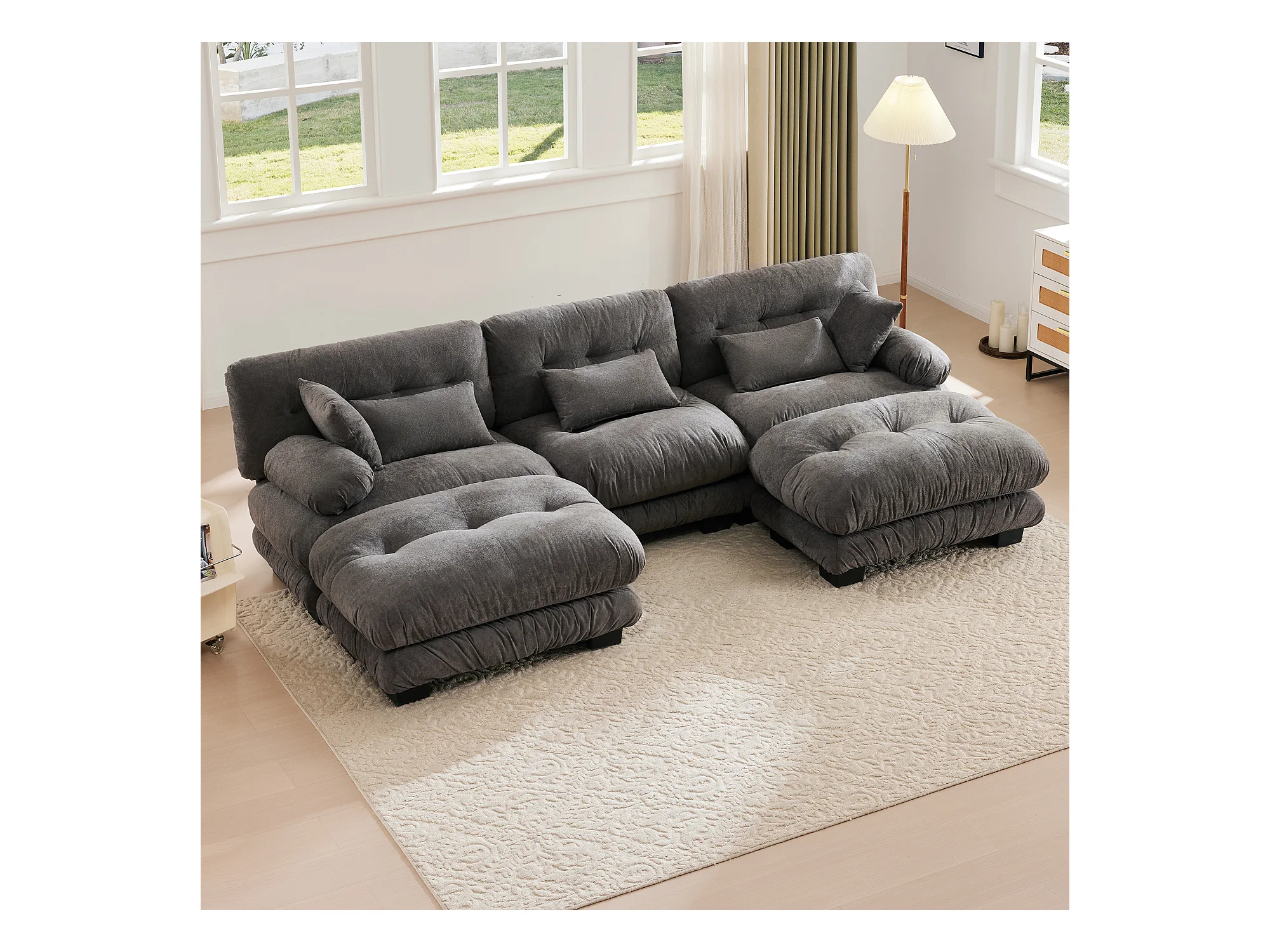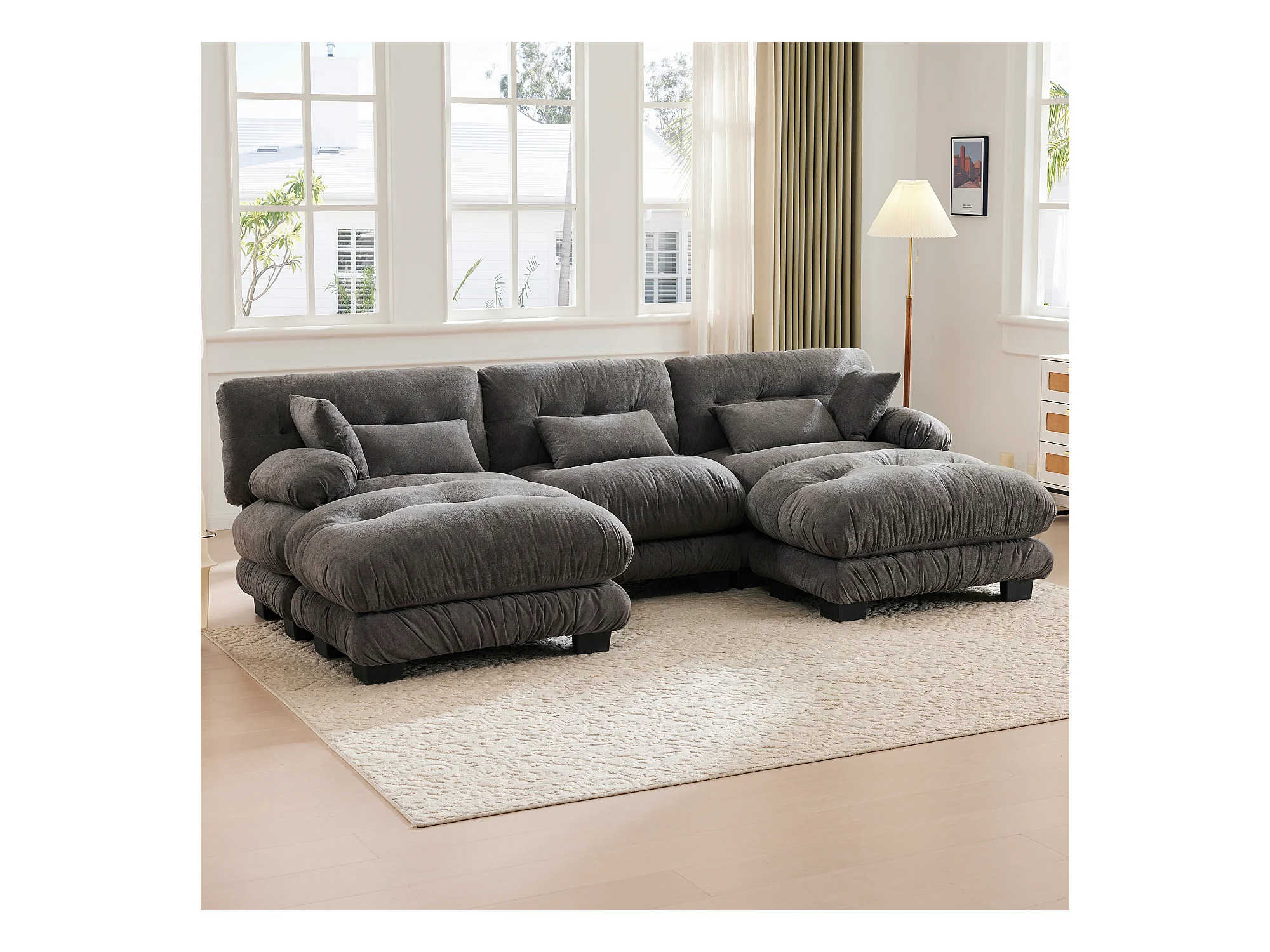 Wygodna sofa modułowa 5-osobowa - 300 x 143 x 80 cm - z 5 poduszkami - welur - szara