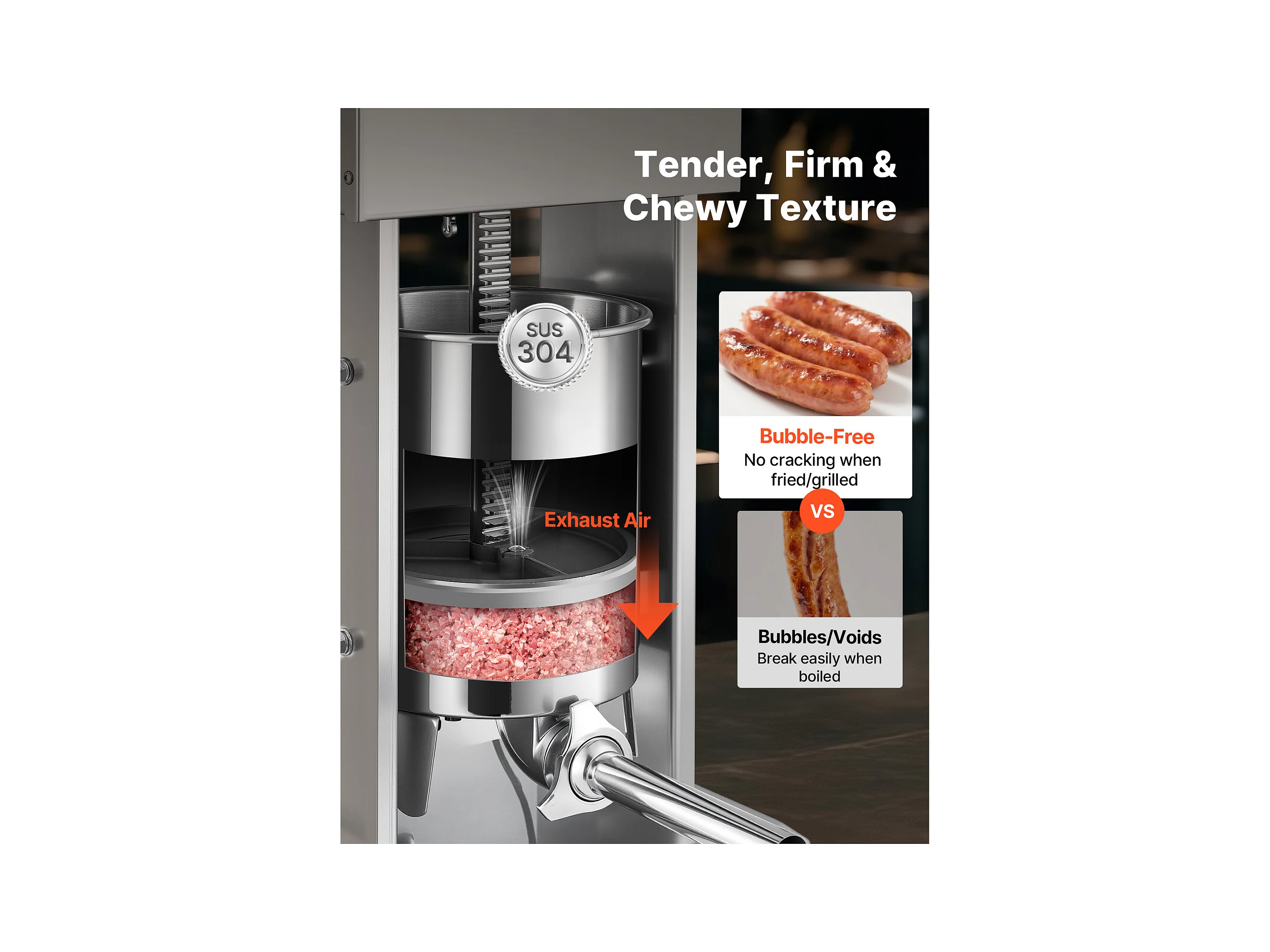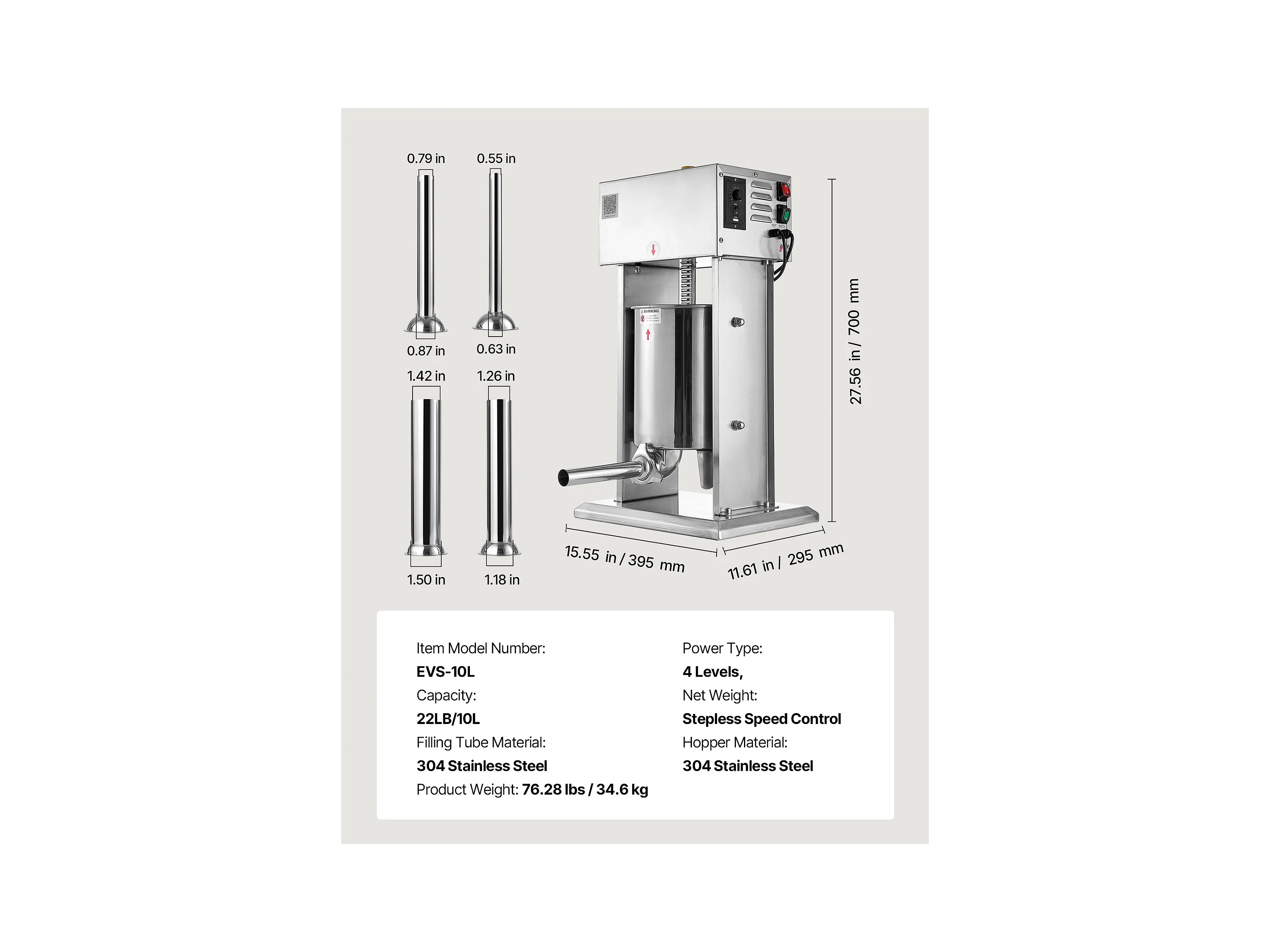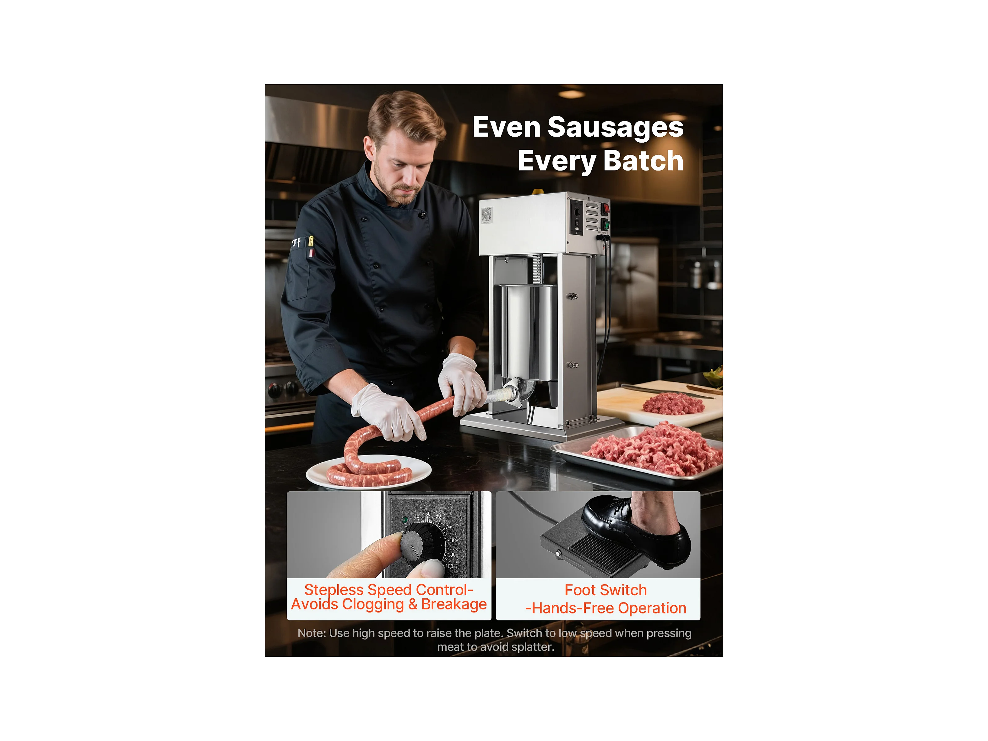 Wypycharka do Kiełbas SucceBuy Elektryczna 10 L, Pionowa Maszyna do Kiełbas ze Stali Nierdzewnej, Napełniarka z Ciągłą Kontrolą Prędkości i Pedałem