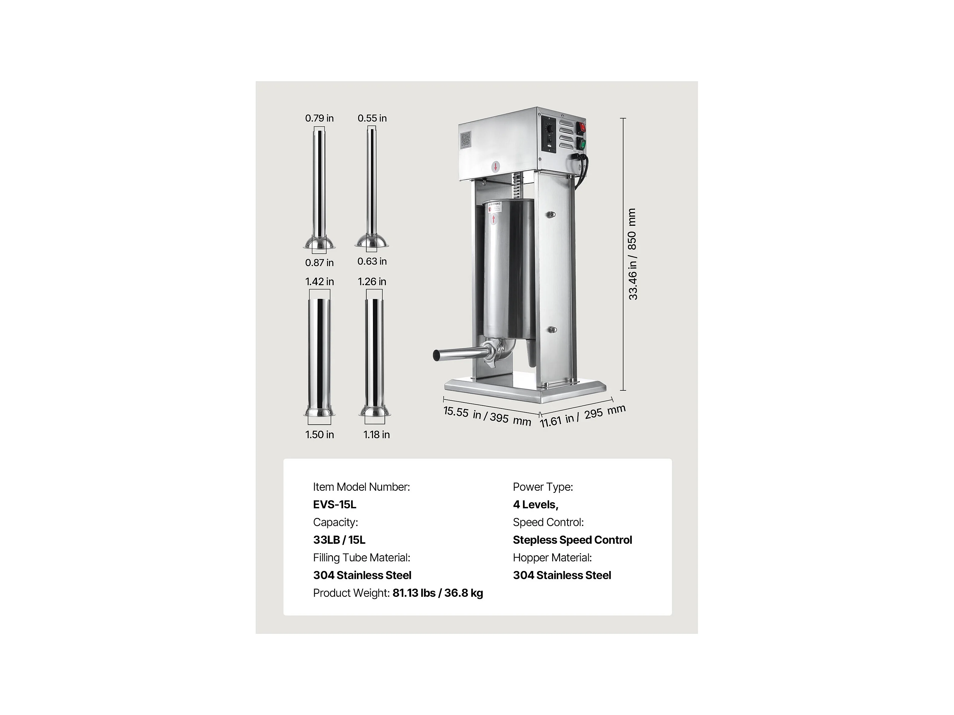 Wypycharka do Kiełbas SucceBuy Elektryczna 15 L, Pionowa Maszyna do Kiełbas ze Stali Nierdzewnej, Napełniarka z Ciągłą Kontrolą Prędkości i Pedałem