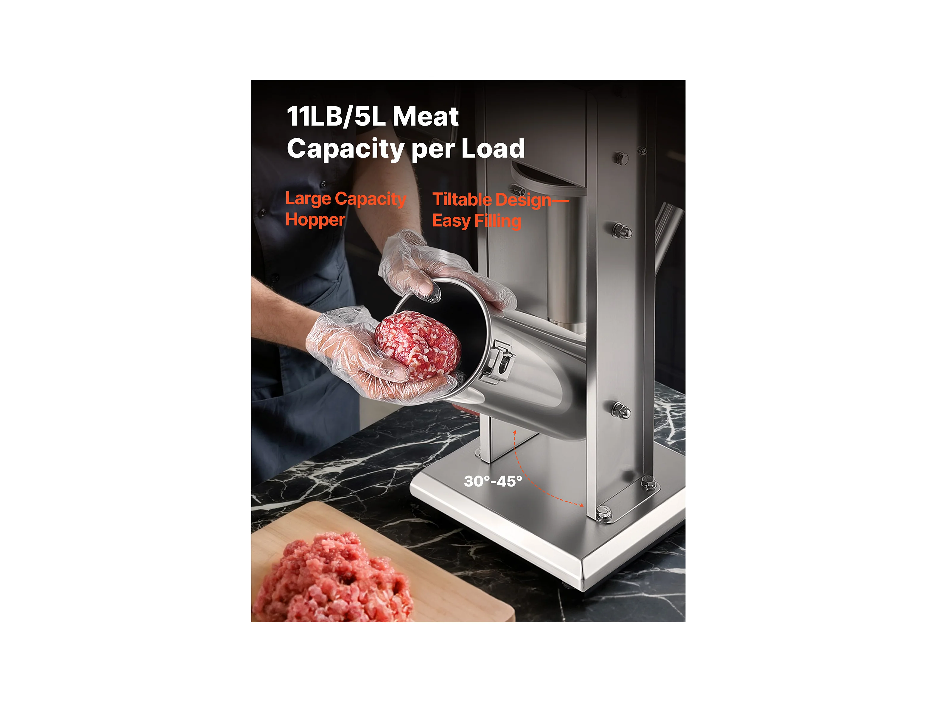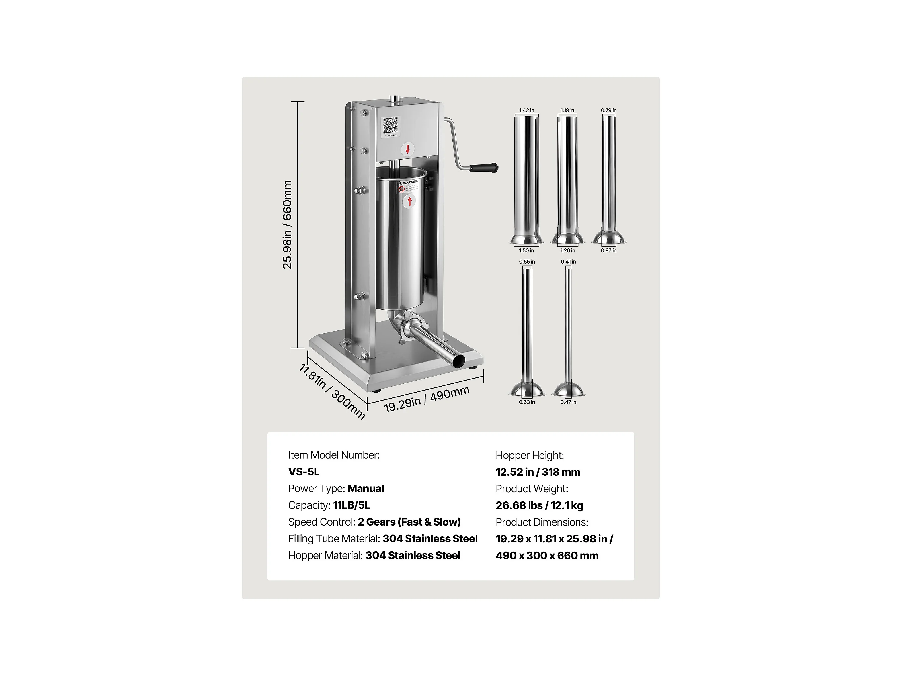 Wypycharka do Kiełbas SucceBuy Ręczna Pojemność 5 L, Pionowa Maszyna do Kiełbas ze Stali Nierdzewnej, Napełniarka z Podwójną Prędkością, z 5 Rurkami do Napełniania