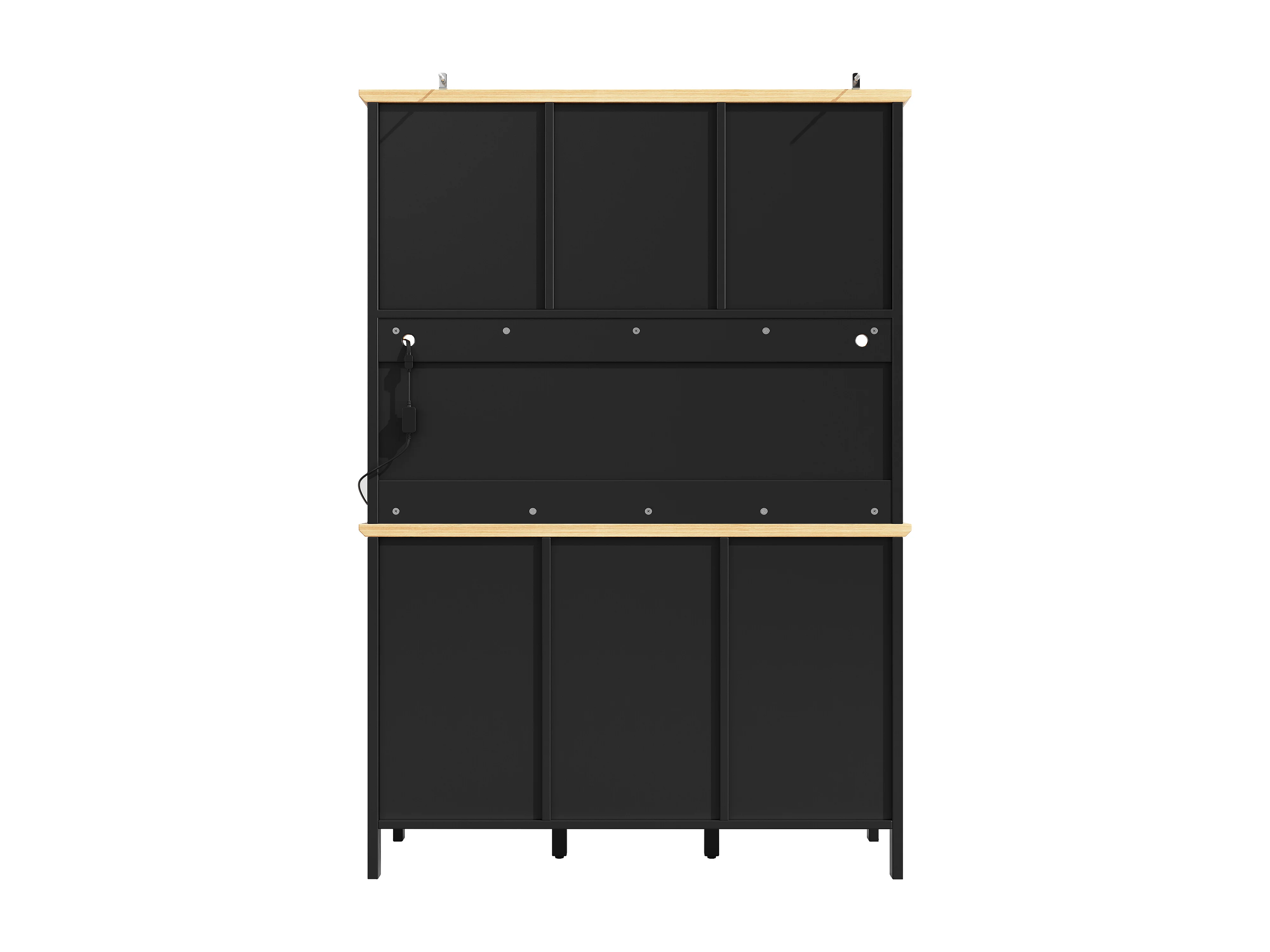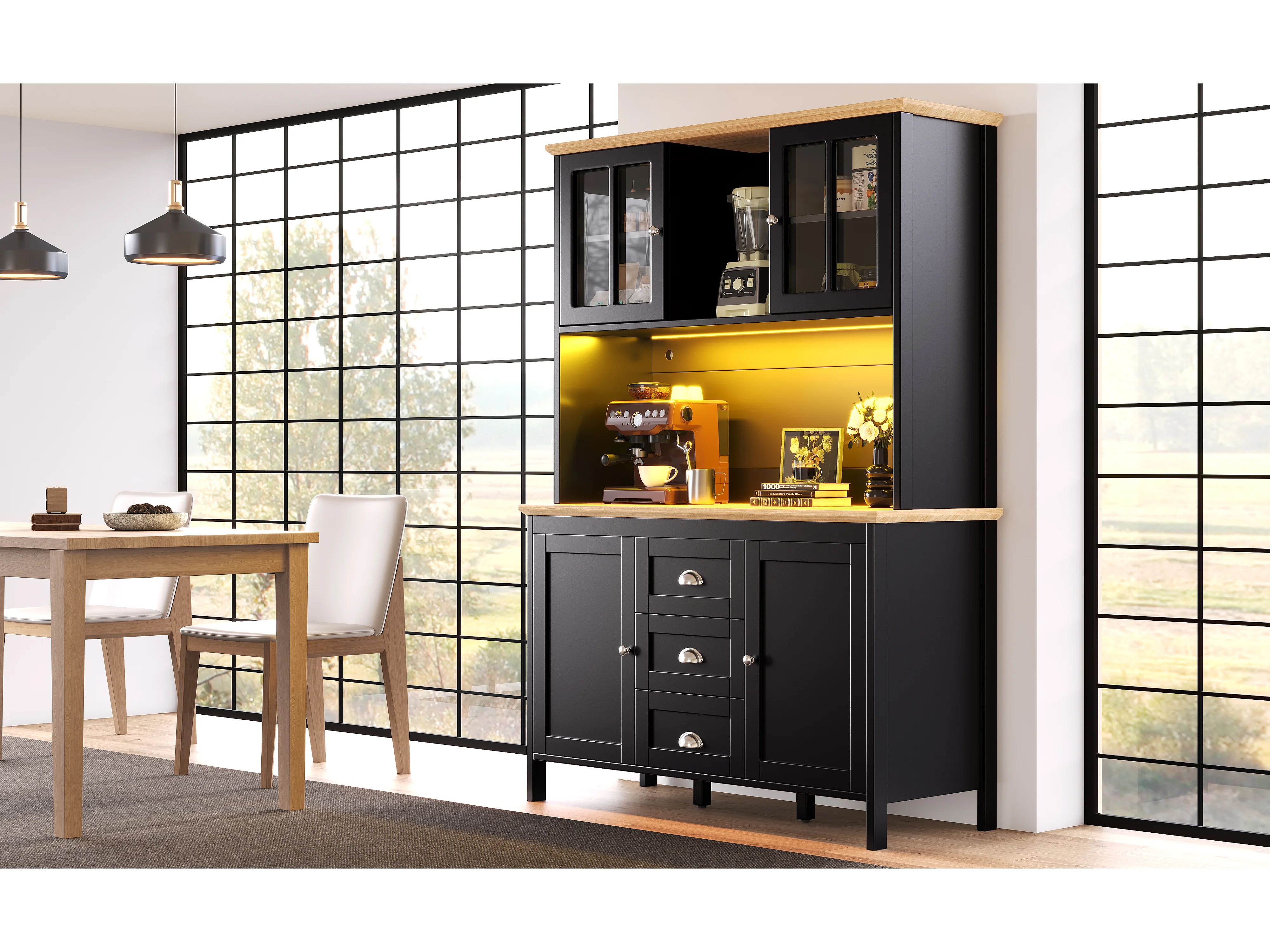 Kredens kuchenny z gniazdkami - 120 x 40 x 138,5 cm - z 3 szufladami + stojak na kieliszki + półki + 2 drzwi - MDF - czarny