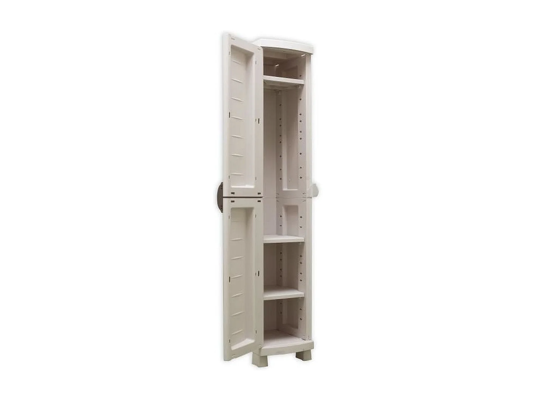Wysoka szafa plastikowa SpaceSaver 35 taupe 1 zamykane drzwi z regulowanymi półkami 35x45x184 cm, montaż bez narzędzi