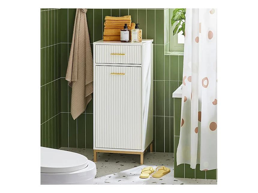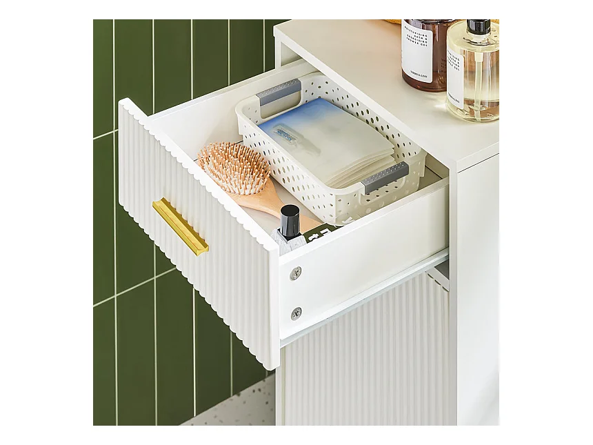 SoBuy wąska szafka łazienkowa oszczędzająca miejsce z 2 koszami i szufladami biała drewniana 79,5x38x90 cm