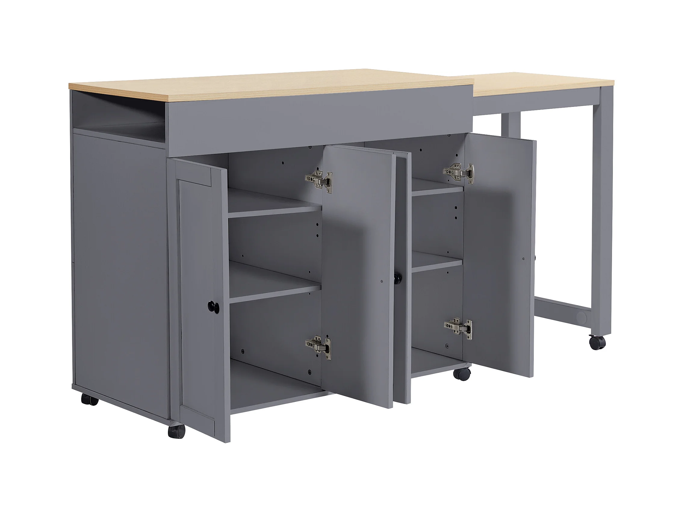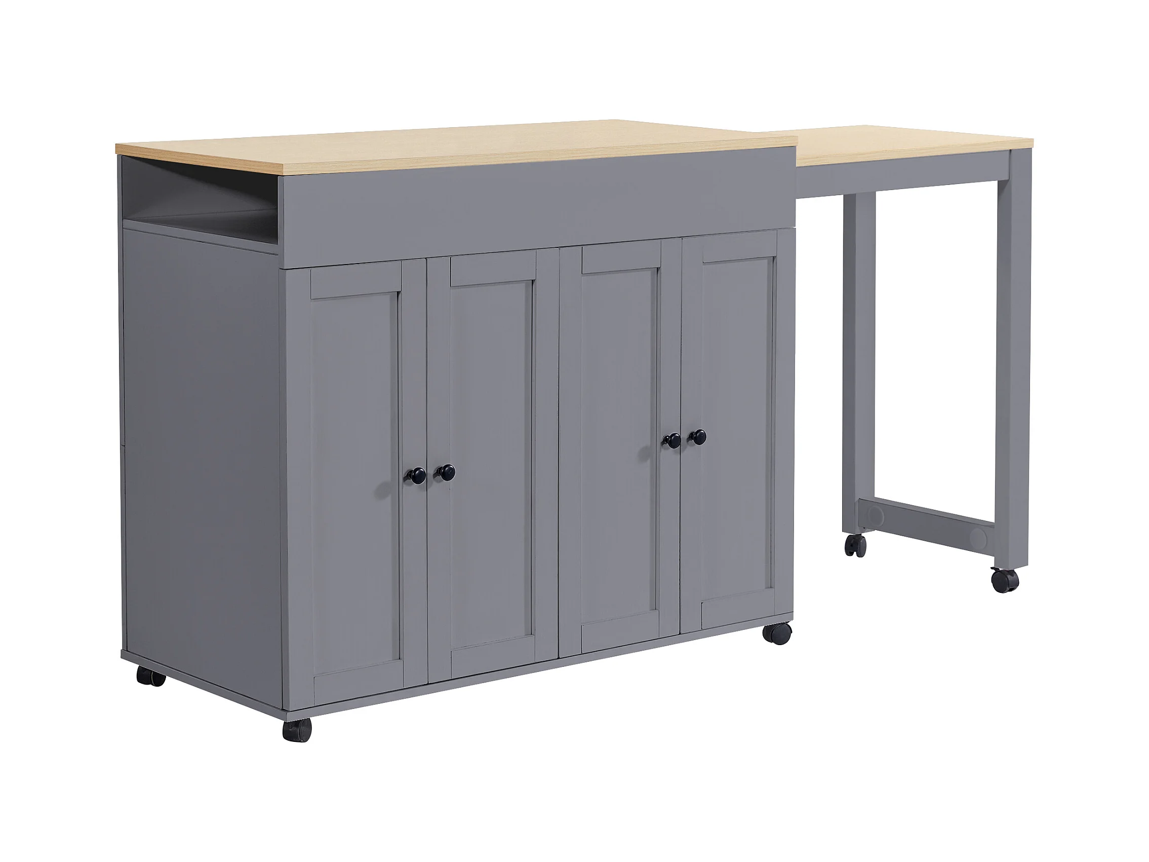 Wyspa kuchenna z 4 drzwiami - Rozkładany blat - 118(180)x46x94 cm - Szary+naturalny