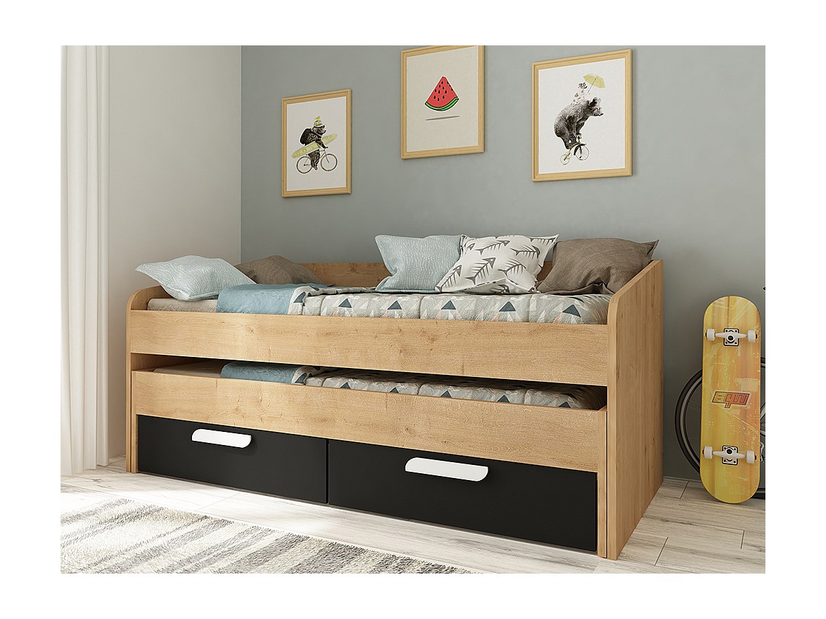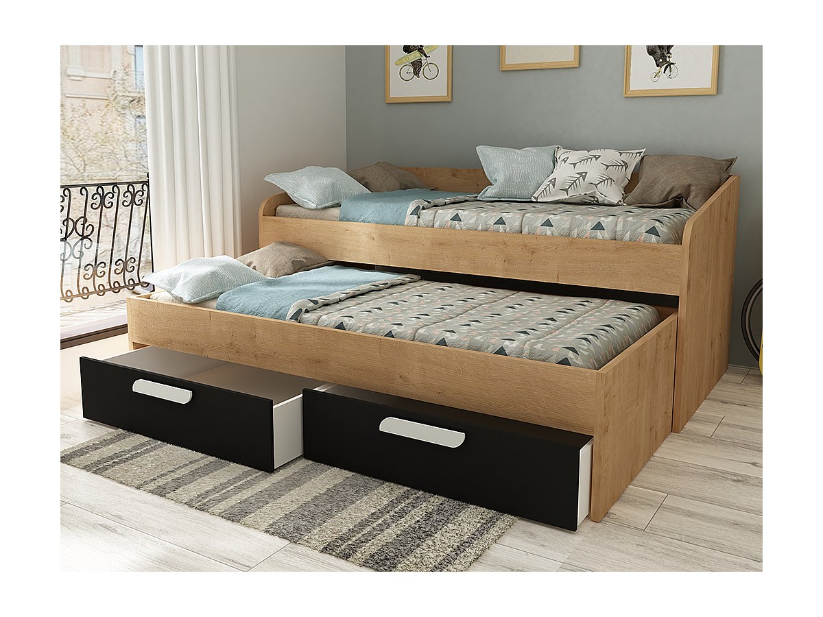 Wysuwane łóżko ANSELME — 2 szuflady — 90 × 190 cm — dąb i antracyt