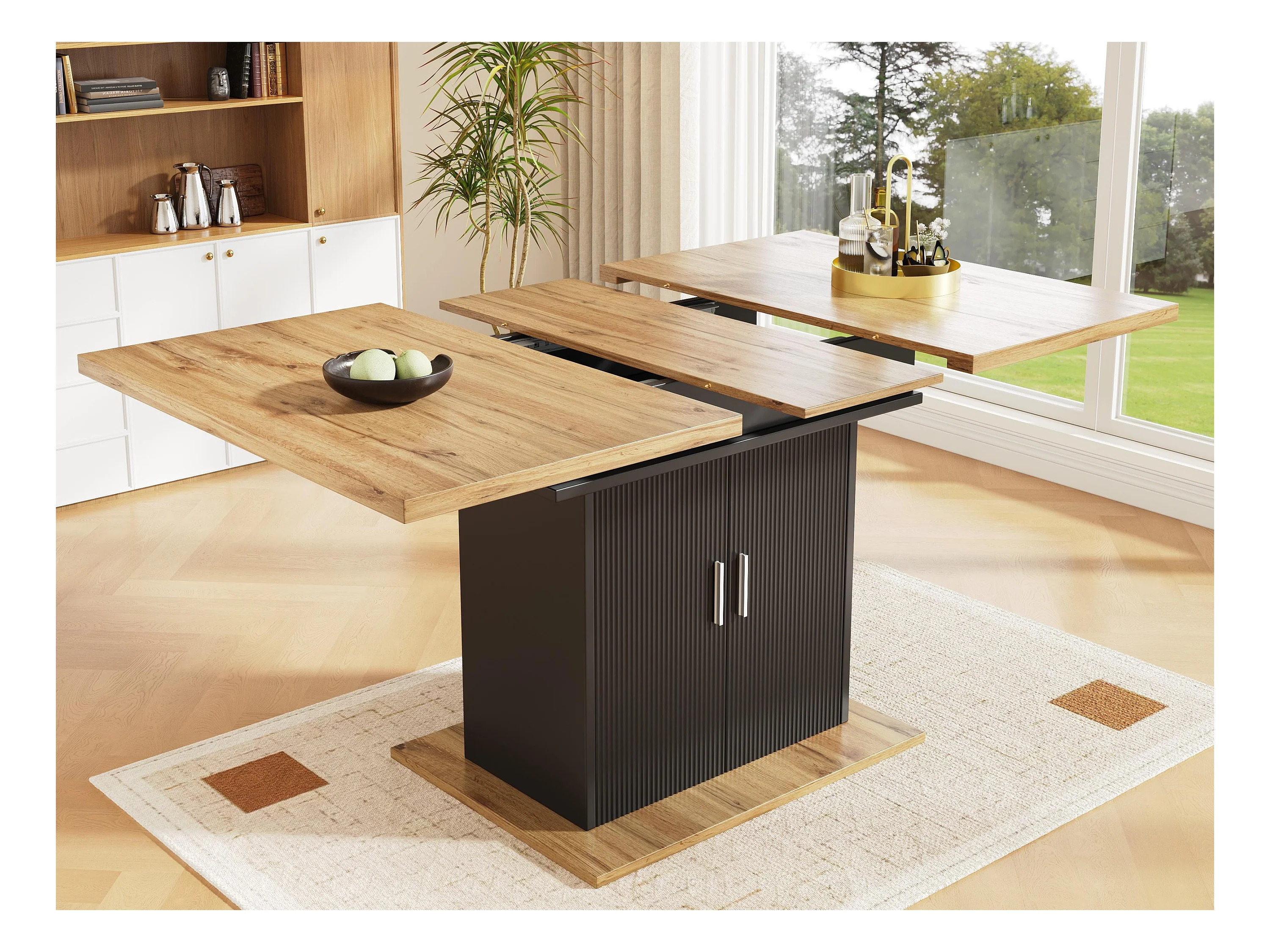 Stół jadalny składany - z MDF - z przechowalnią - Czarny i Naturalny