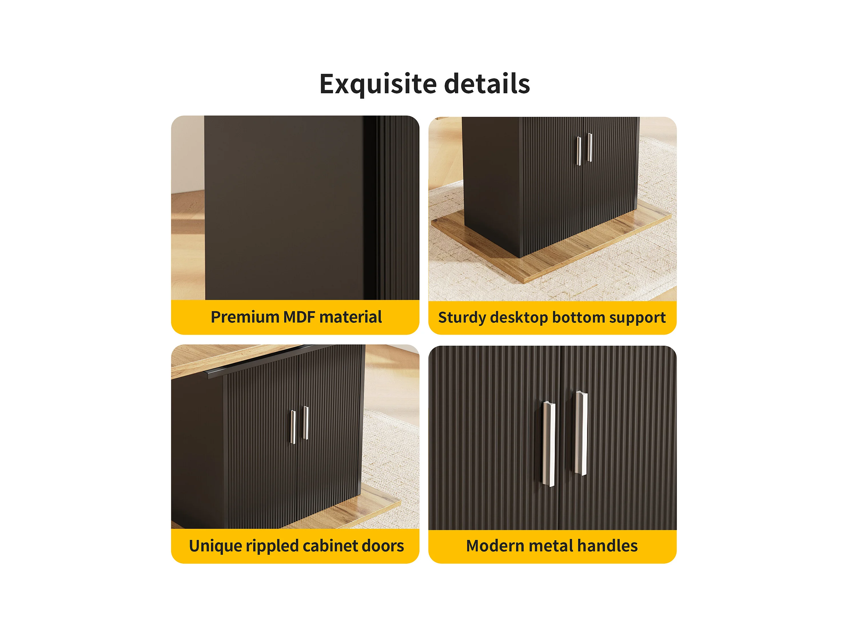 Stół rozsuwany - Nogi metalowe - Z 2 drzwiczkami - Z 6 kółkami - Biały + Czarny