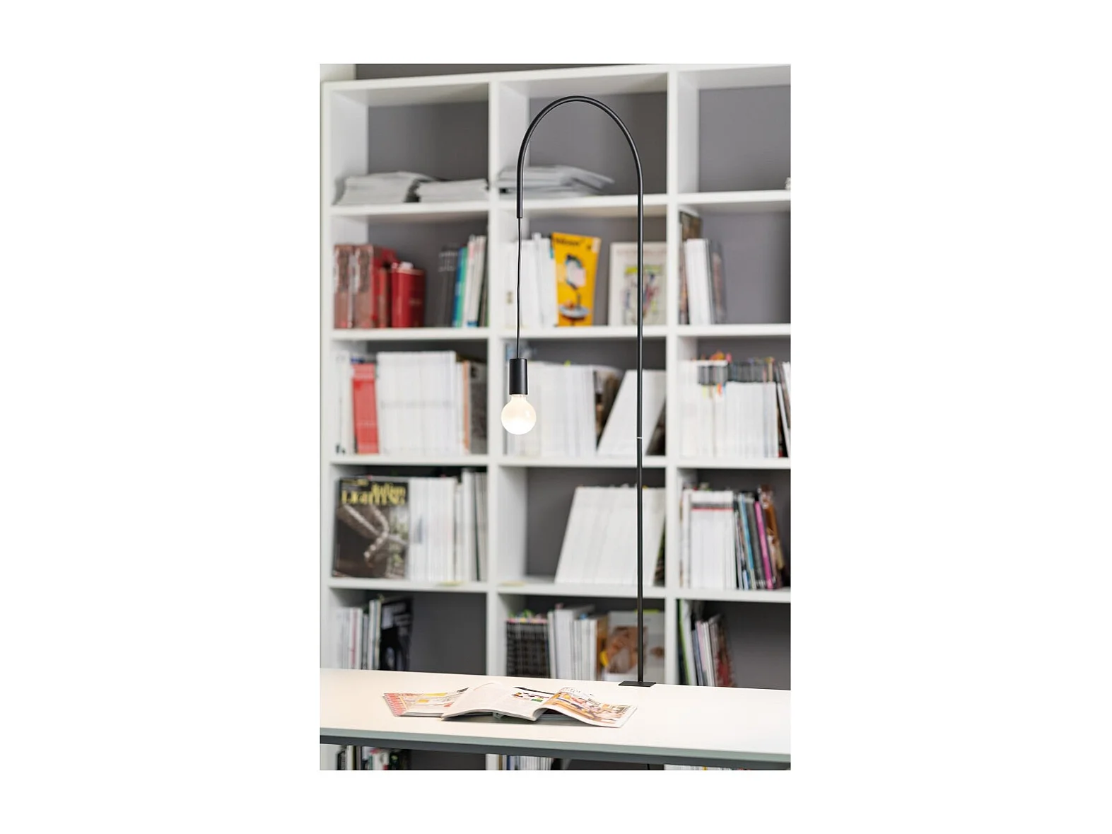 Zafferano - Lampa stołowa z drutu z zaciskiem, obrotowa 200°, wys. 152 cm, malowany metal, żarówka E27 maks. 60 W w zestawie - biała