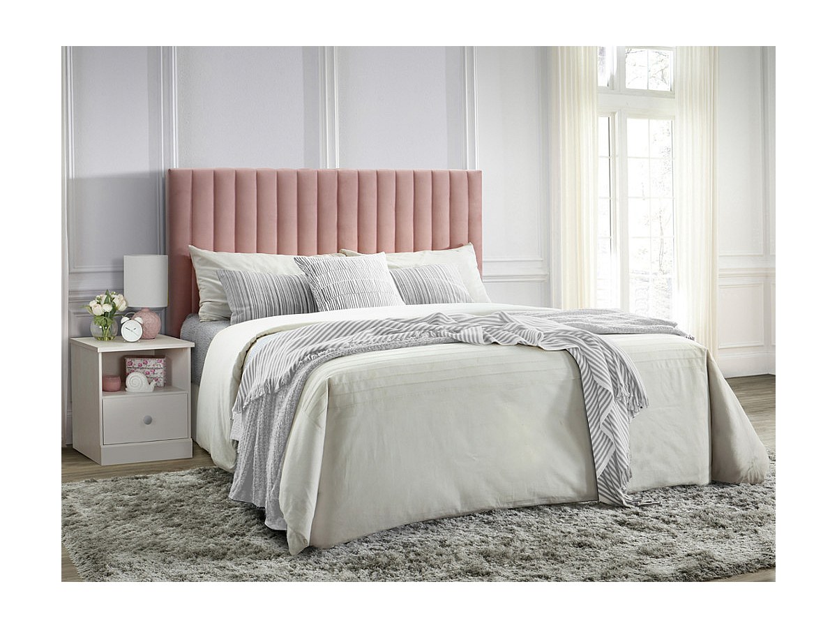 Zagłówek AGENORE z pionowymi przeszyciami – tkanina welur – 160 cm – kolor: pudrowy róż