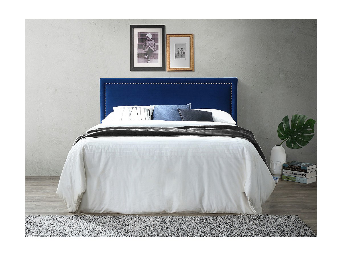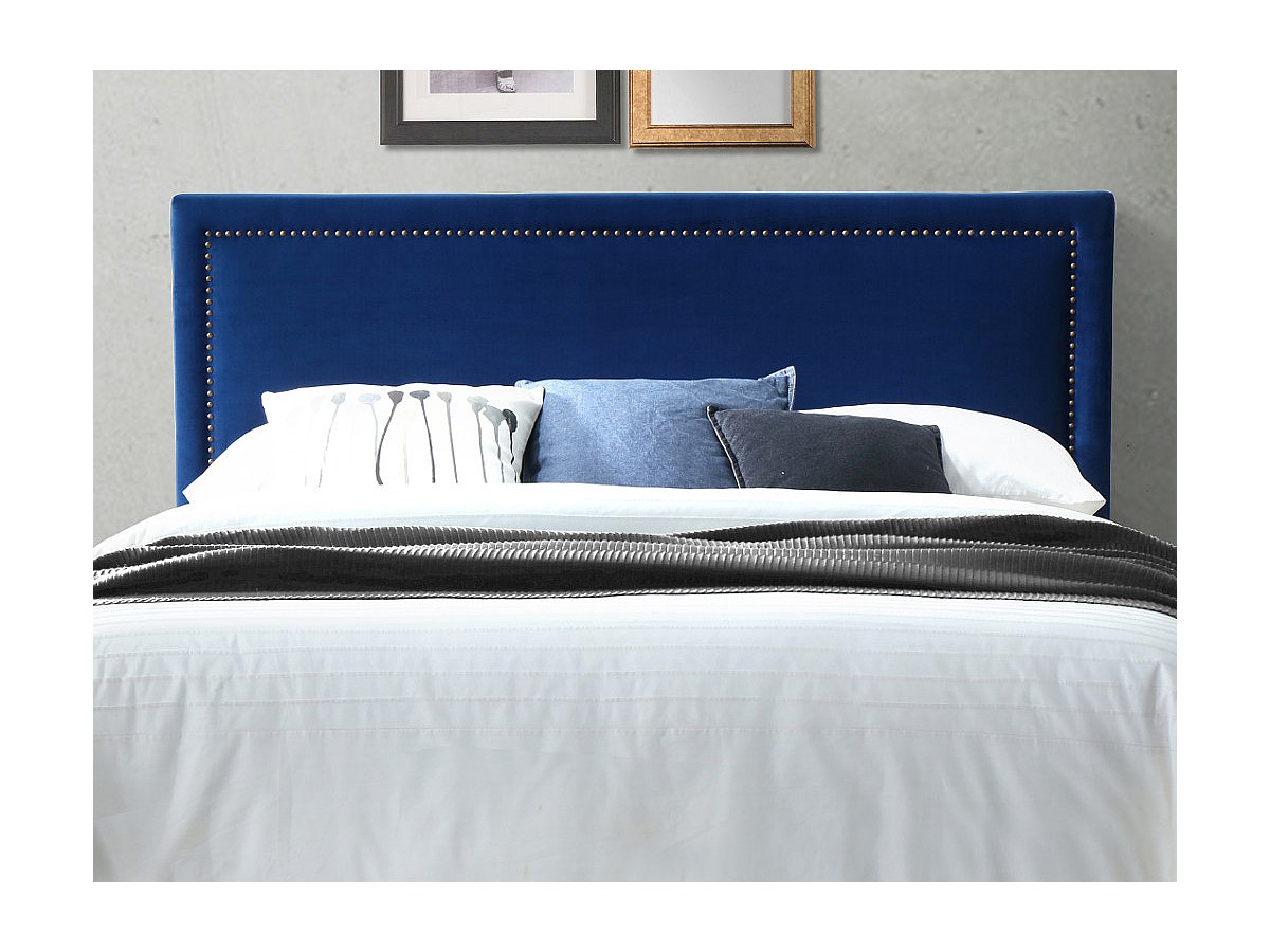 Zagłówek łóżka wykończony nitami ALVISE - Tkanina imitująca welur - 160 cm - Kolor niebieski