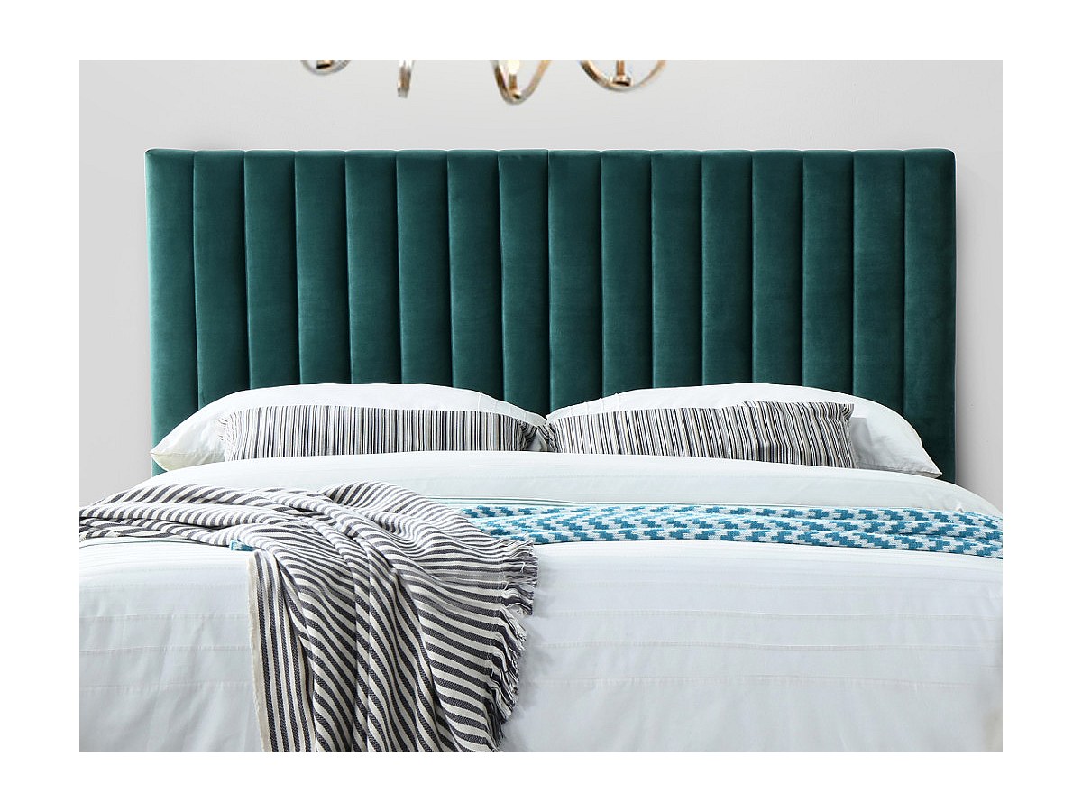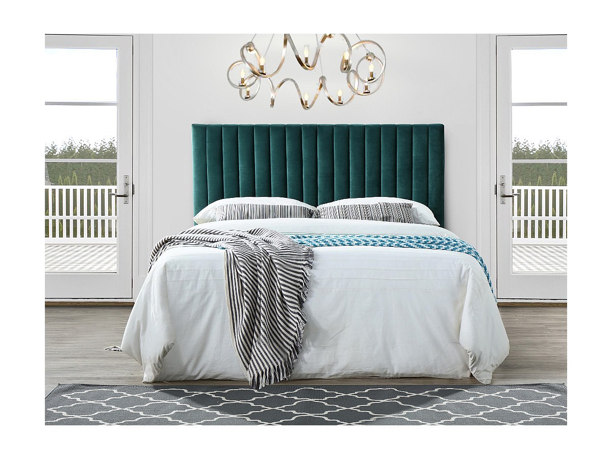 Zagłówek łóżka z pionowymi szwami AGENORE - Tkanina imitująca welur - 160 cm - Kolor szmaragdowy