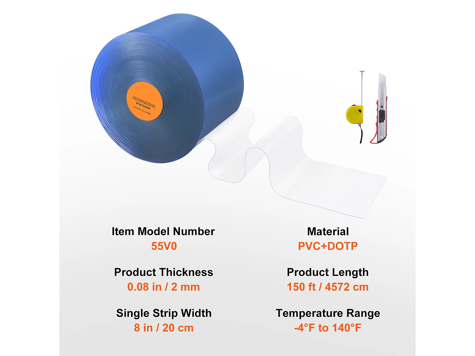 Zasłona Drzwiowa Paskowa SucceBuy PVC Strip Curtain do Drzwi Lodówki 4572 x 20 cm Przezroczysta Rolka Plastikowa do Zamrażarki
