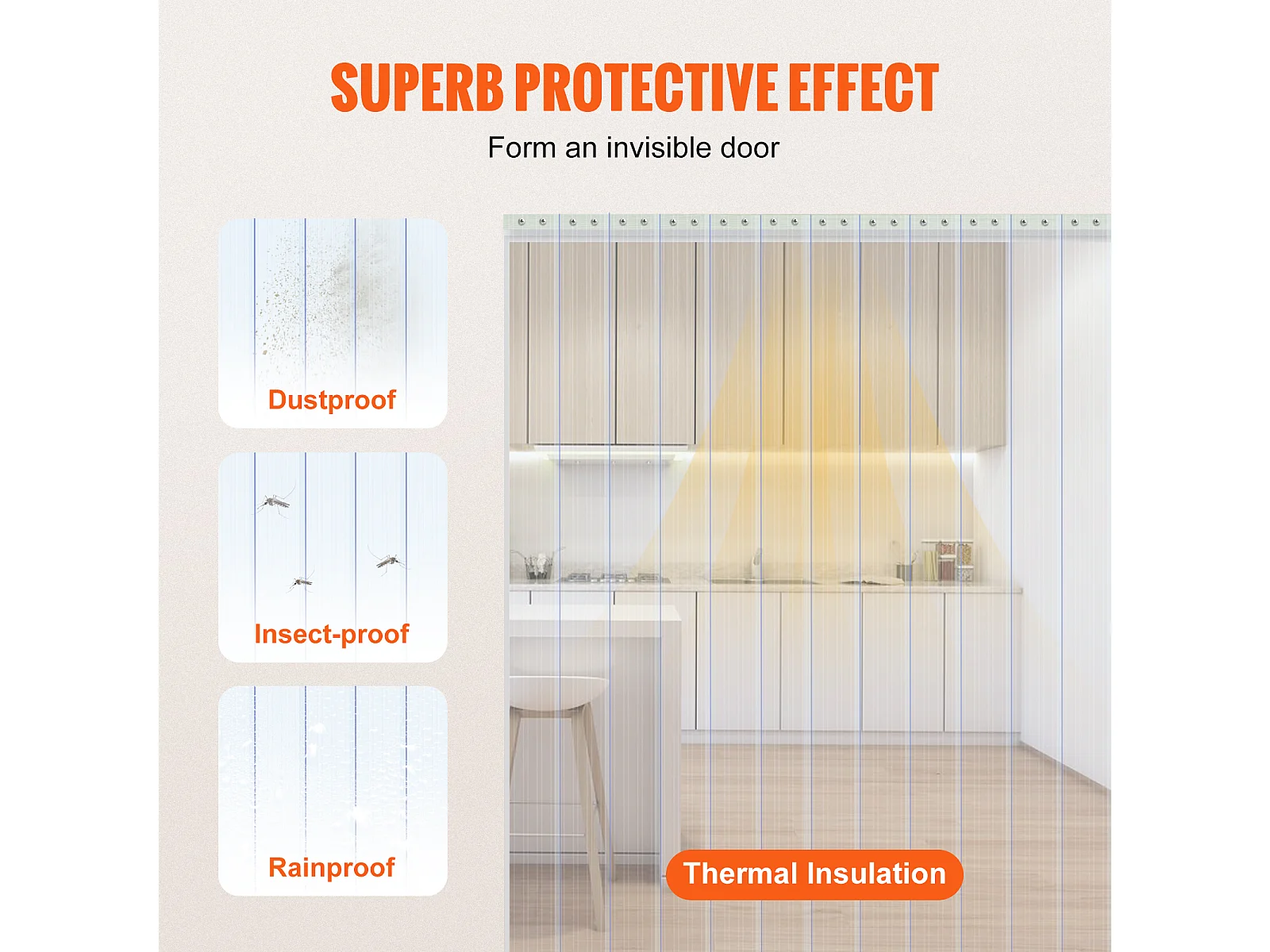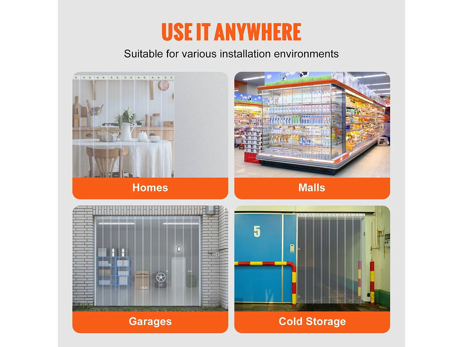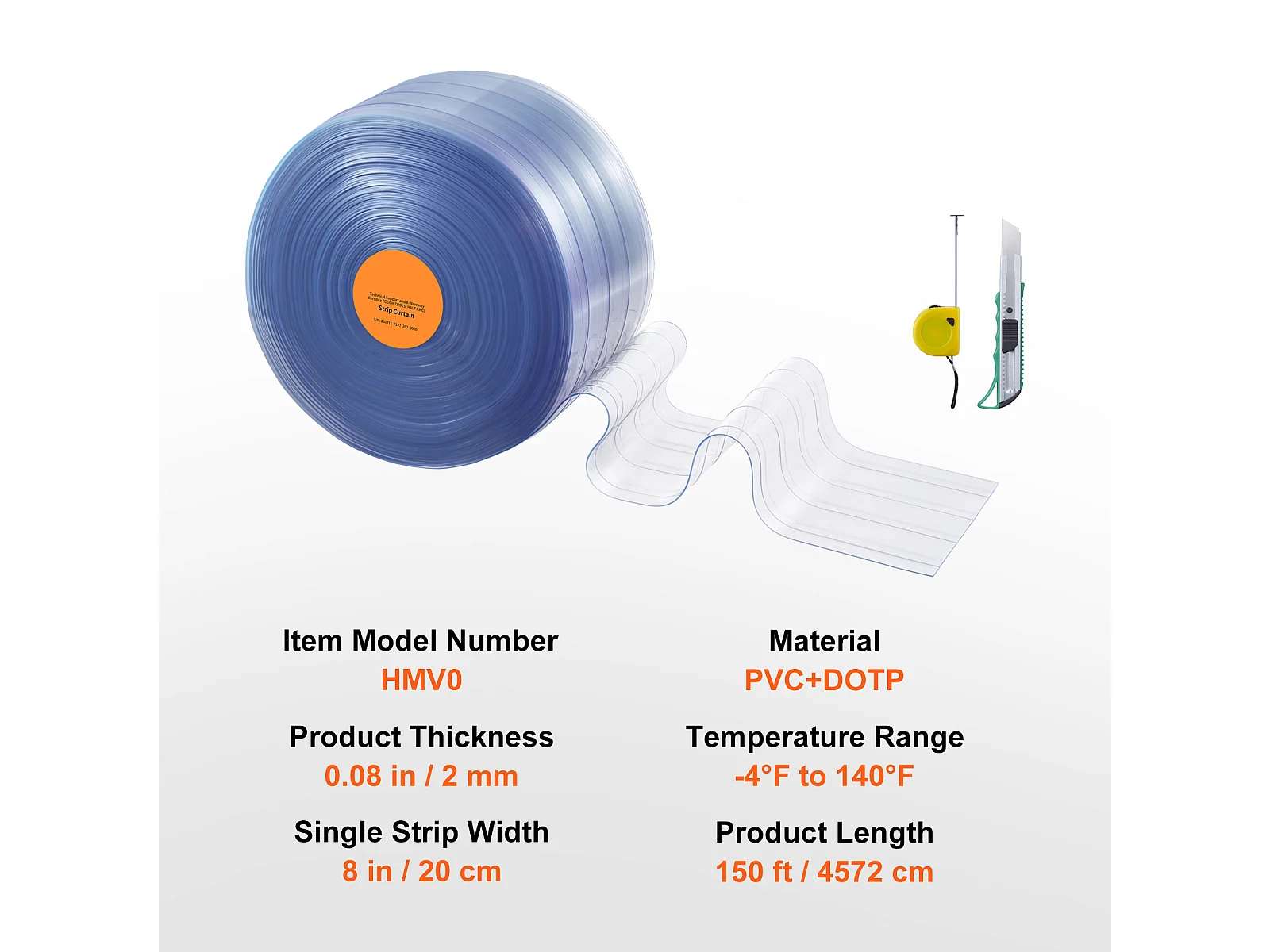 Zasłona Drzwiowa Paskowa SucceBuy Zasłona Paskowa, Żebrowana Zasłona Drzwiowa z PVC, Rolka 4572 cm x 20 cm, do Chłodziarki, Zamrażarka, Plastik