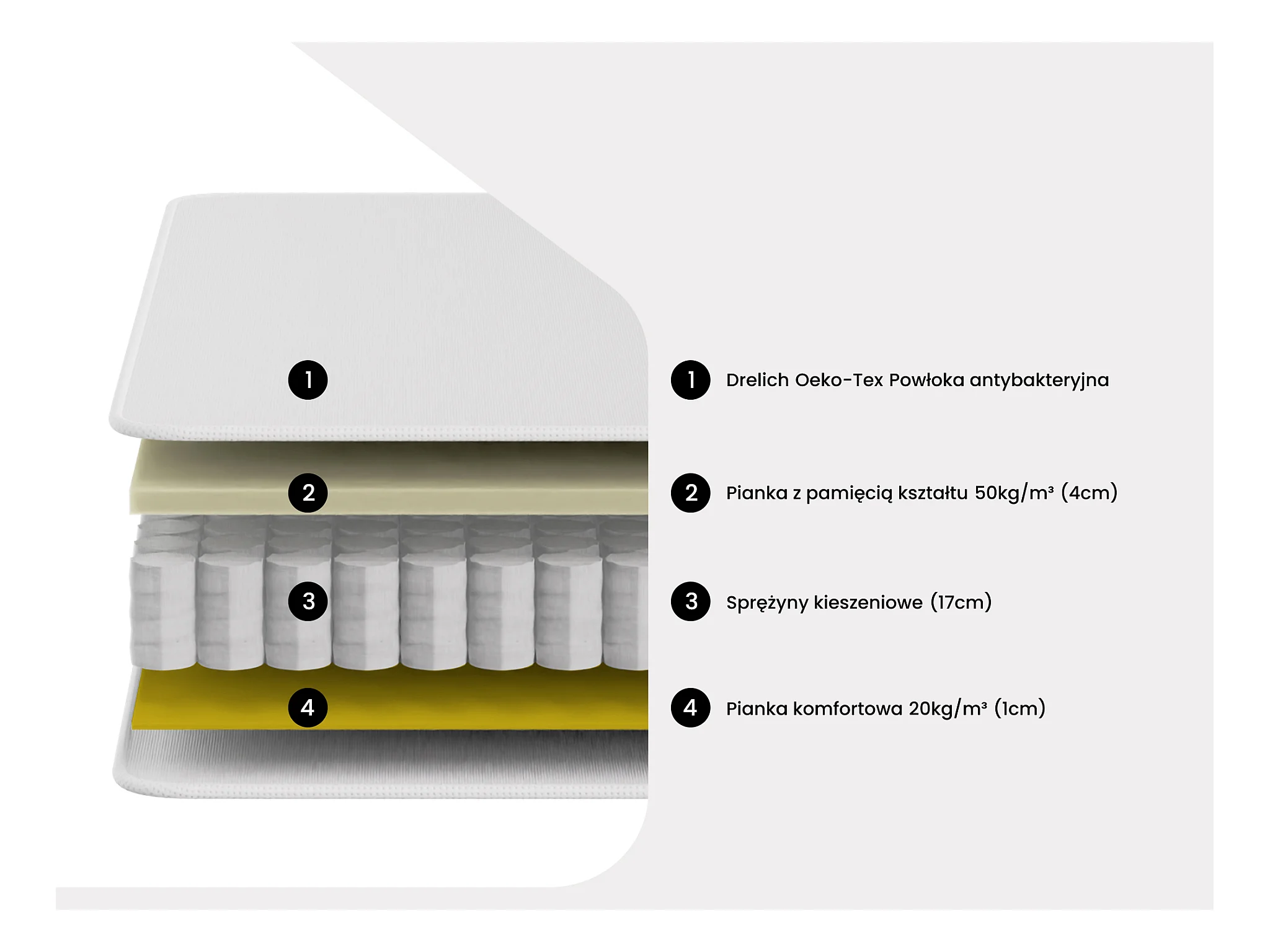 Zestaw 140 x 190 cm stelaż z jasną naturalną skrzynią + materac o grub. 24 cm ze sprężynami kieszeniowymi i pamięcią kształtu - ILLUSION marki YSMÉE