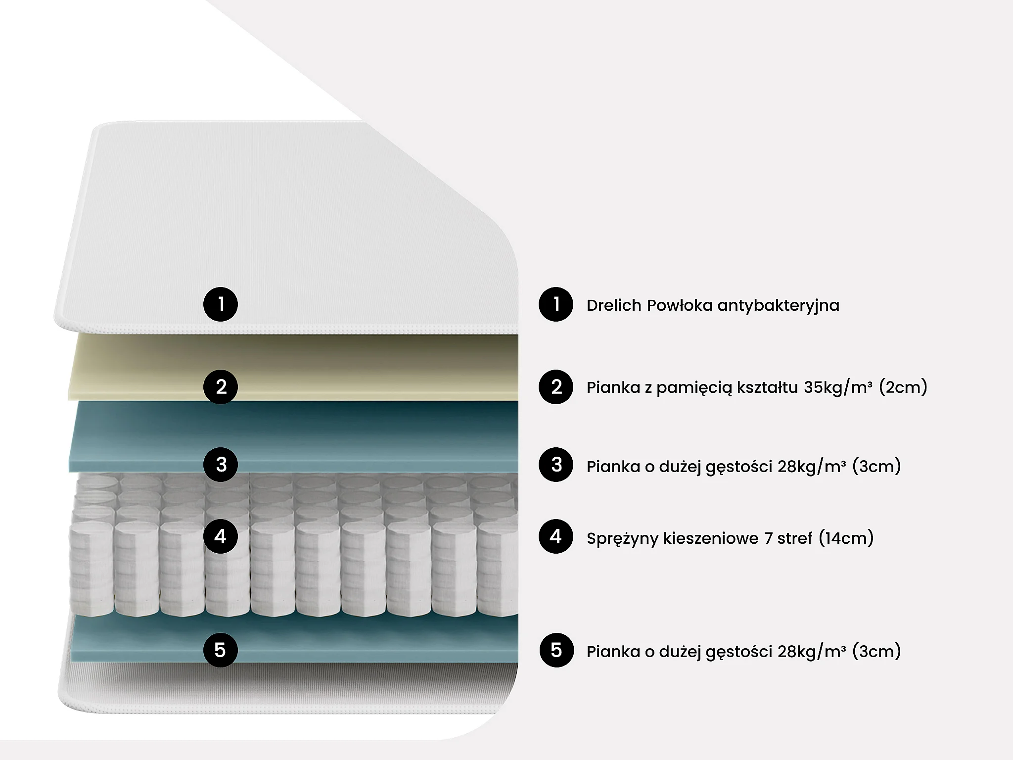 • Sprężyny kieszeniowe tworzące 7 stref podparcia